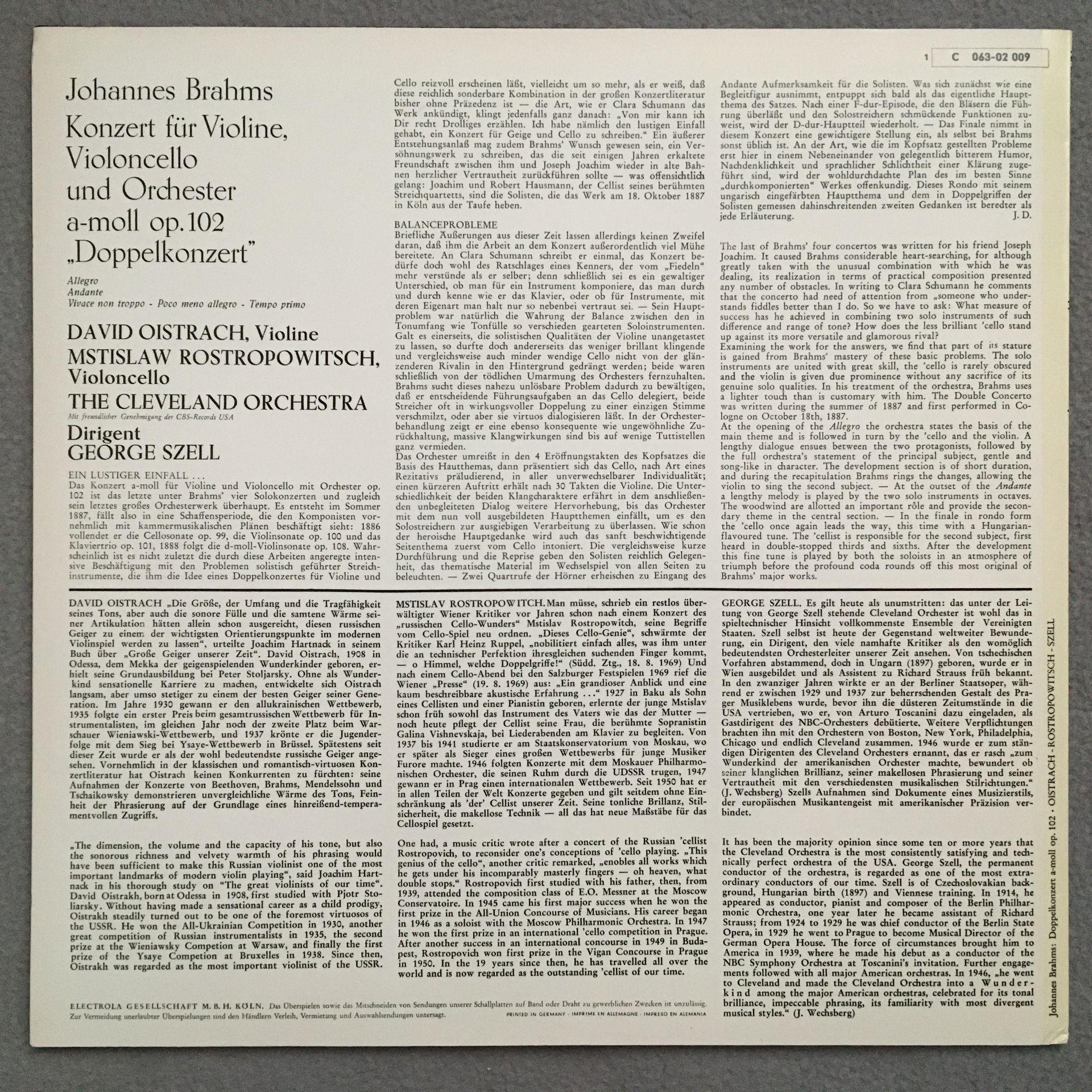 Q011 Brahms Double Concerto Oistrakh Rostropovich Szell EMI 1 C 063-02 009 St