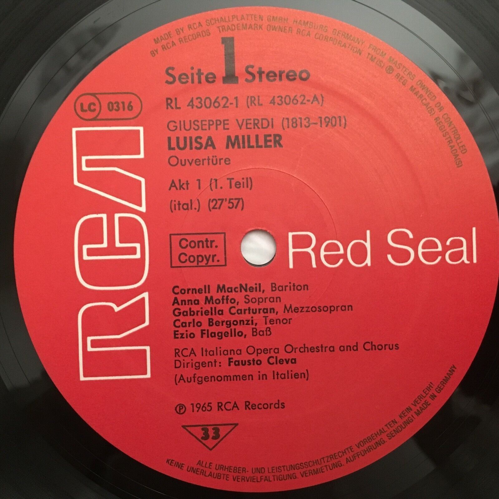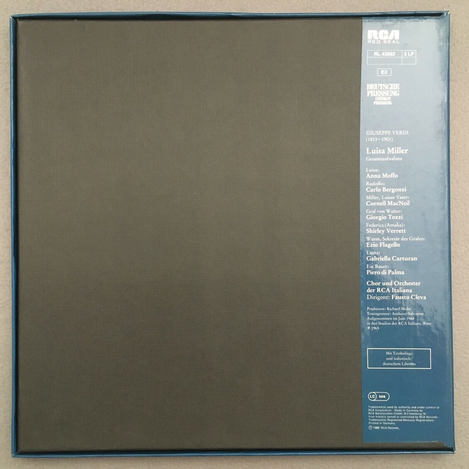 B413 Verdi Luisa Miller Moffo Bergonzi Tozzi Cleva 3LP RCA RL 43062 Stereo