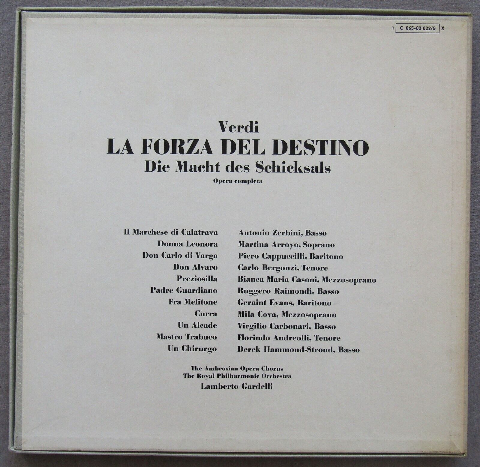 G411 Verdi la Forza del Destino Gardelli 4LP EMI Angel 1 C 065-02 022/5 X Stereo