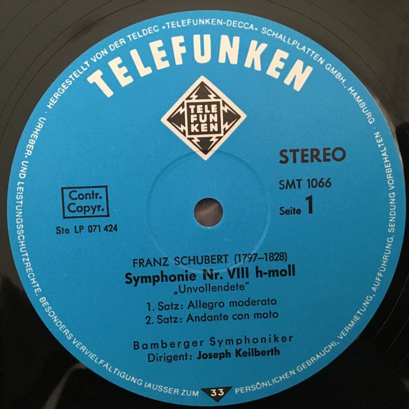 S464 Schubert Symphony Smetana Moldau Keilberth Telefunken SMT 1066 Stereo