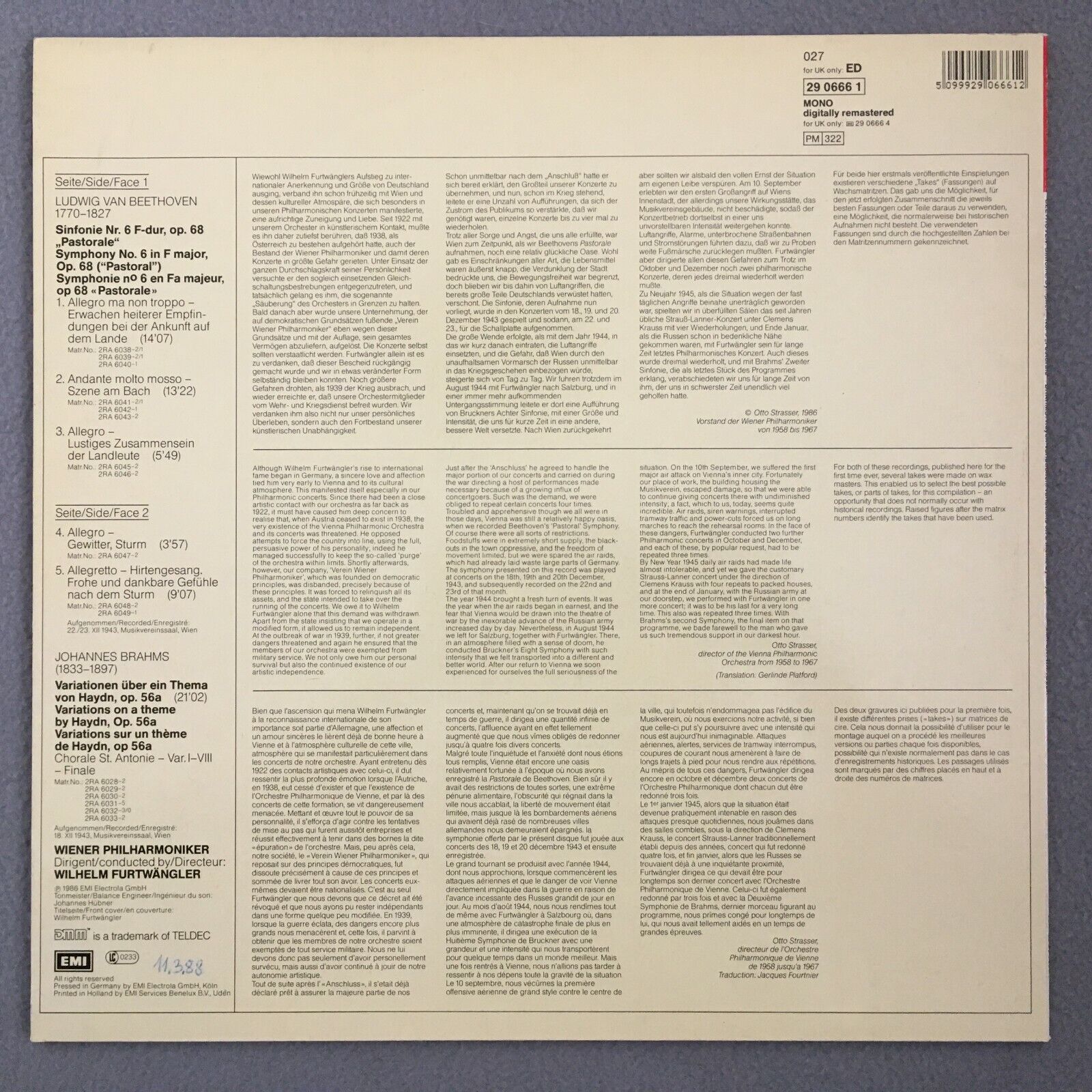 S462 Beethoven Symphony Brahms Furtwangler VPO EMI 027 29 0666 1 Digital