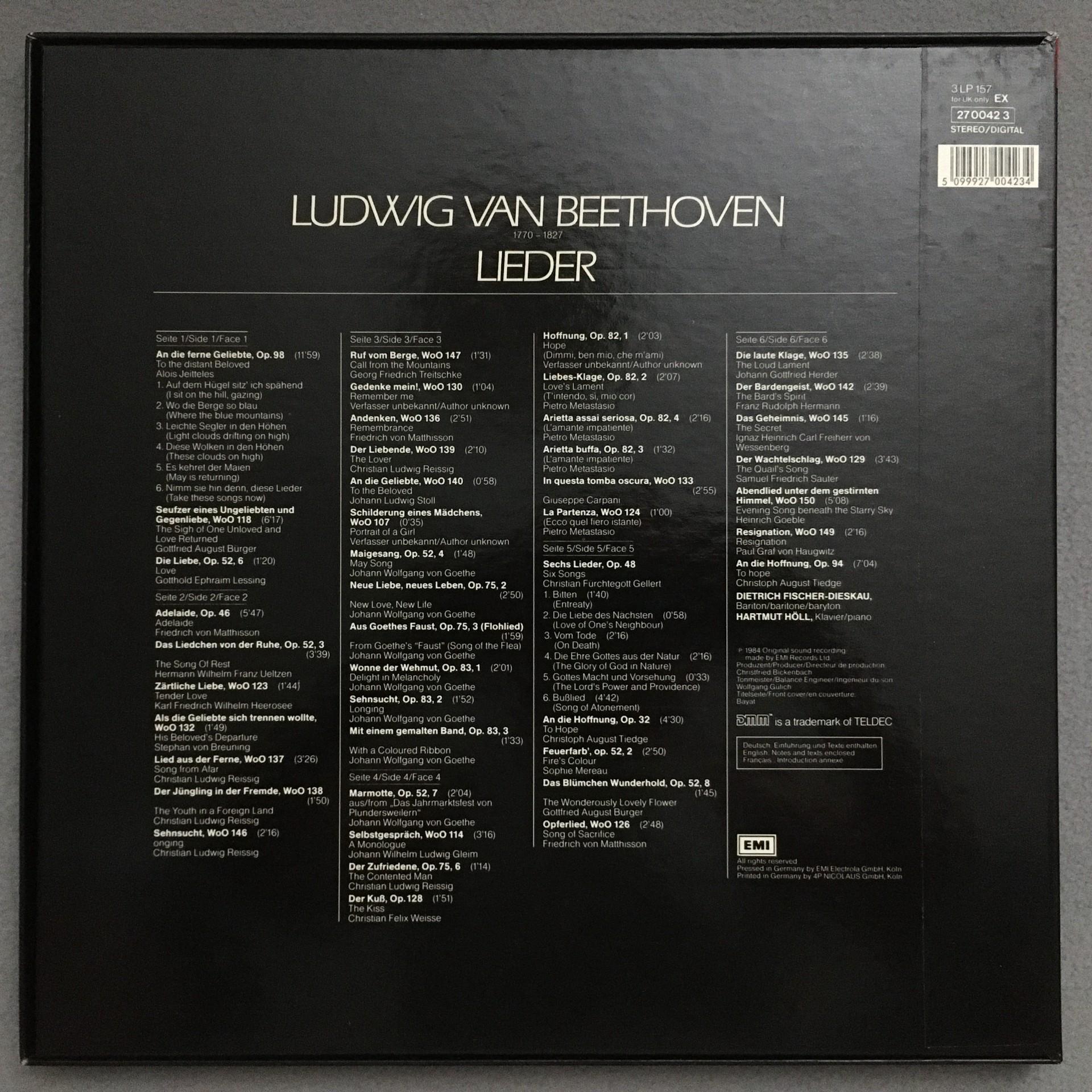 C064 Beethoven Songs Fischer-Dieskau Höll 3LP EMI 157 270042 3 Digital Stereo