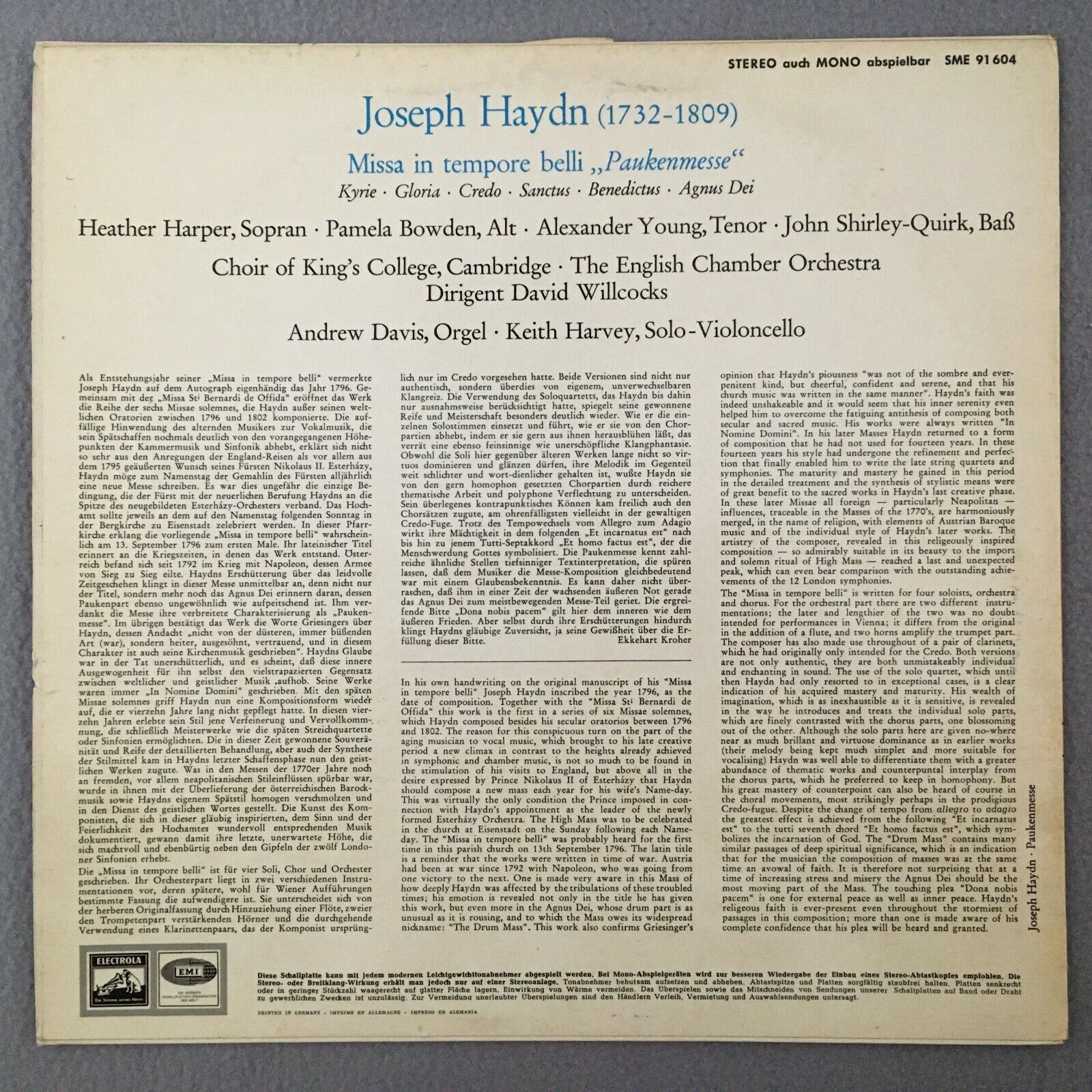 S450 Haydn Mass Harper Young Davis Willcocks Electrola w/g SME 91 604 Stereo