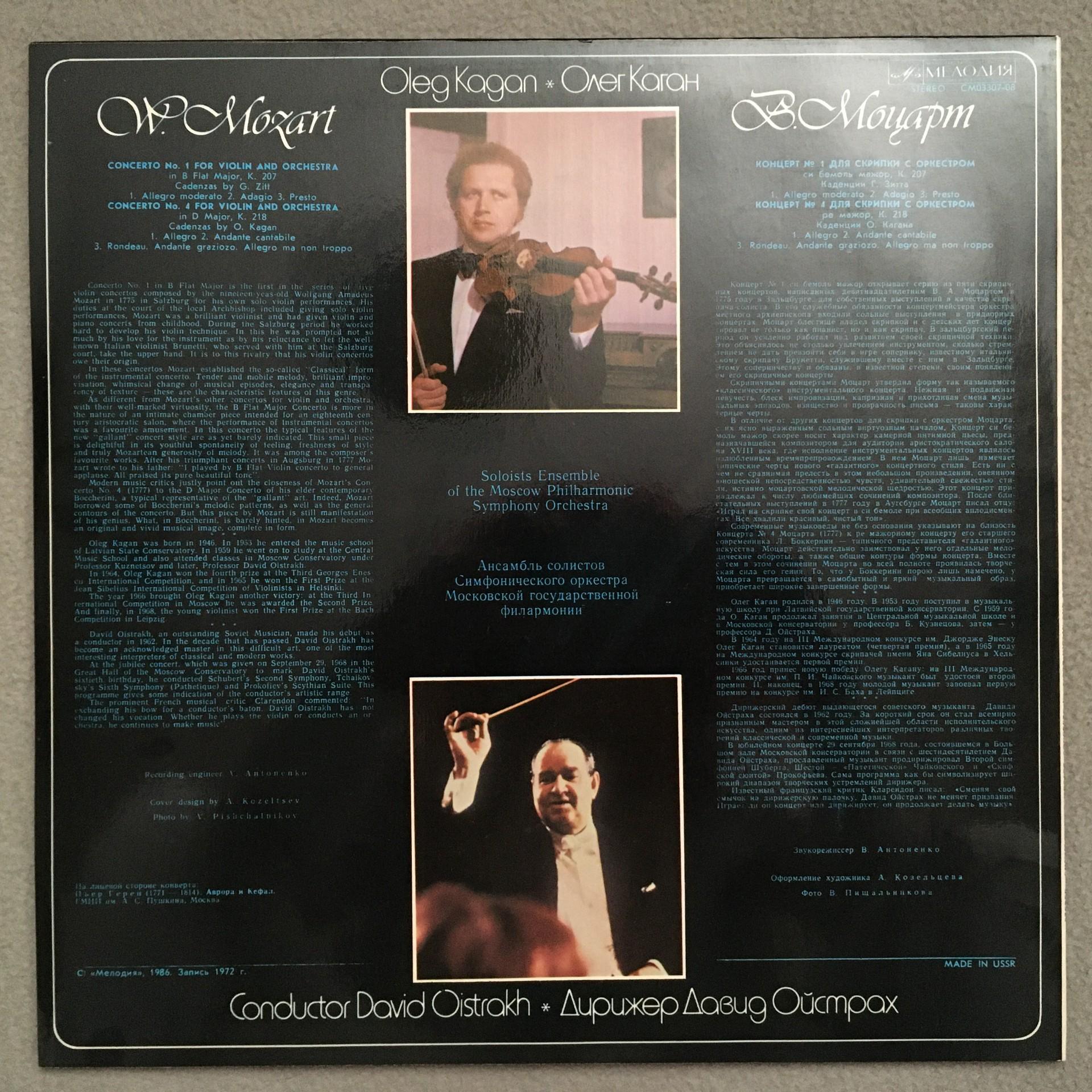 Q041 Mozart Violin Concertos No.1 & No.4 Oistrakh Melodiya CM 03307-08 Stereo
