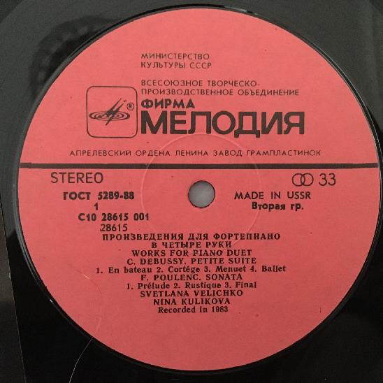 Q047 Works for Piano Duet Velichko Kulikova Melodiya C10 28615 001 Stereo