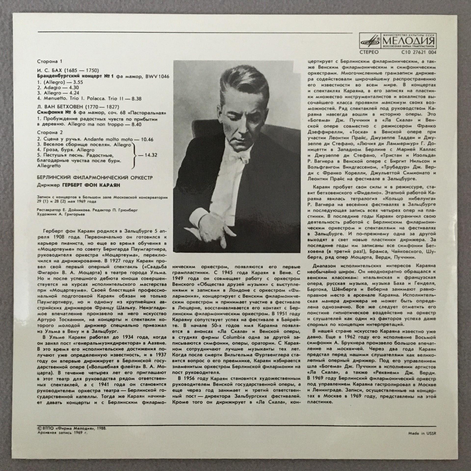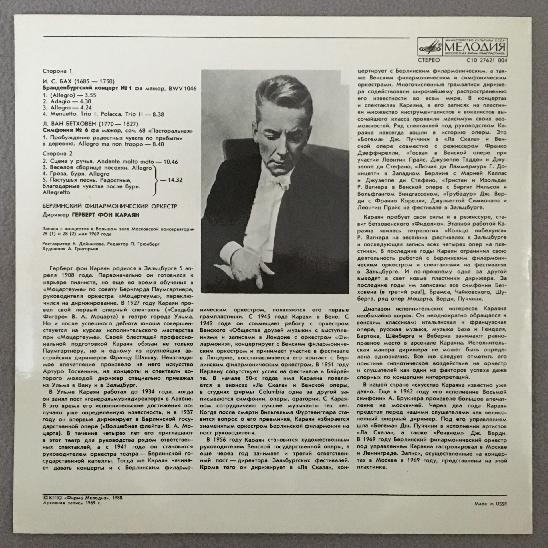 Q054 Bach Brandenburg Concerto Beethoven Karajan Melodiya C10 27621 004 Stereo
