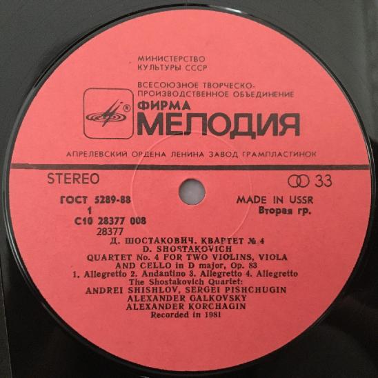 Q060 Shostakovich Quartets Shostakovich Quartet Melodiya C10 28377 008 Stereo