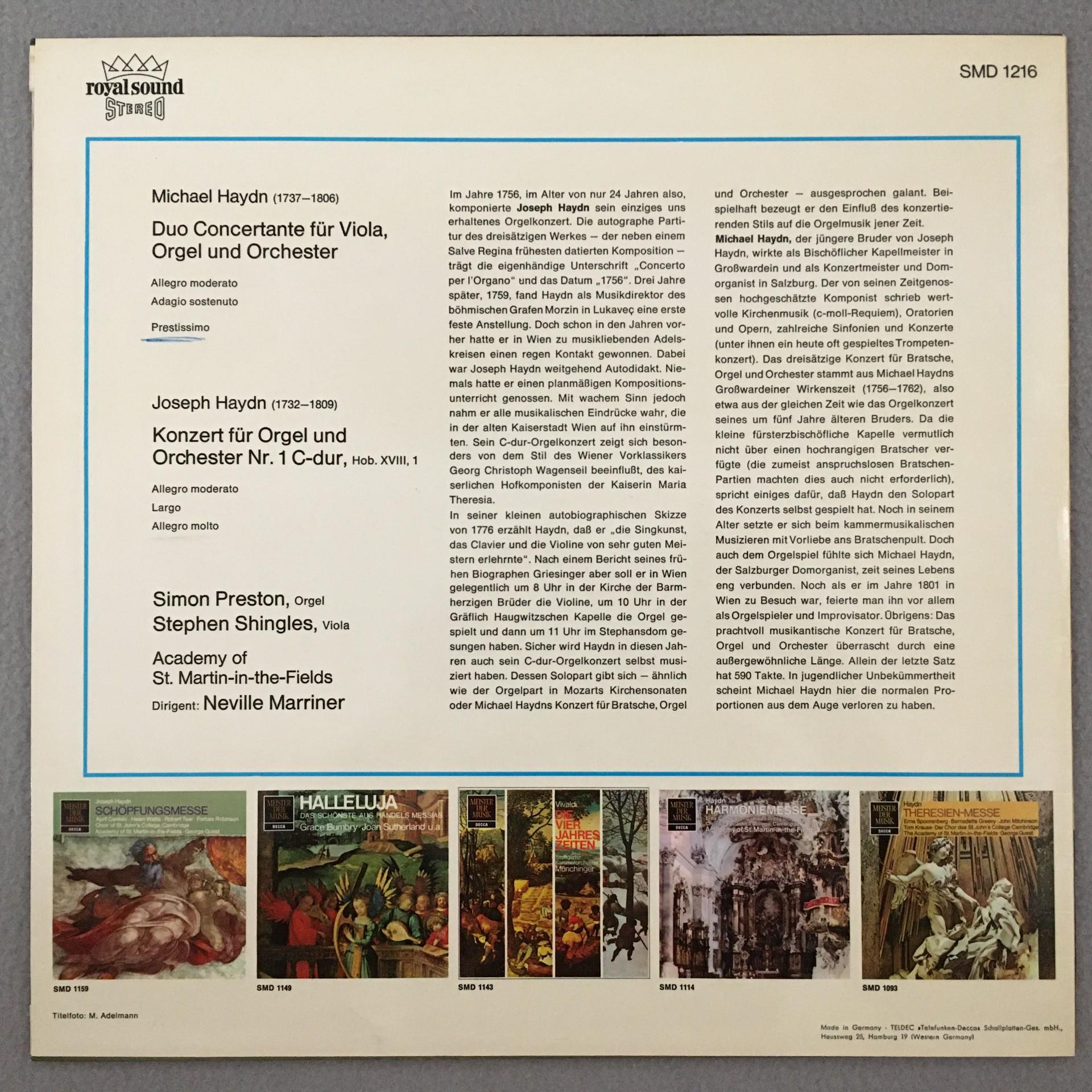 Q066 Haydn Organ Concerto Preston Shingles Marriner DECCA SMD 1216 Stereo
