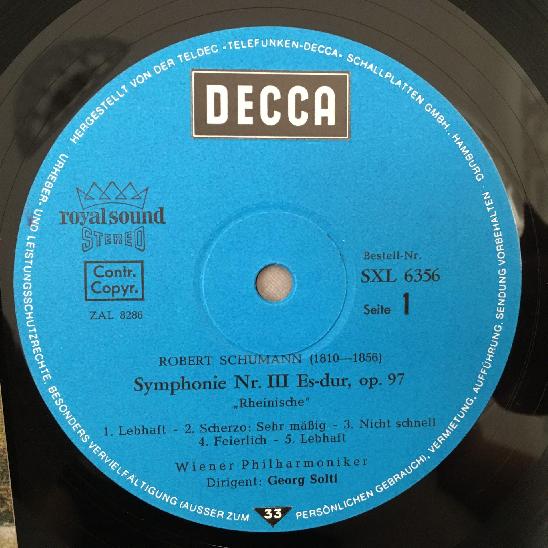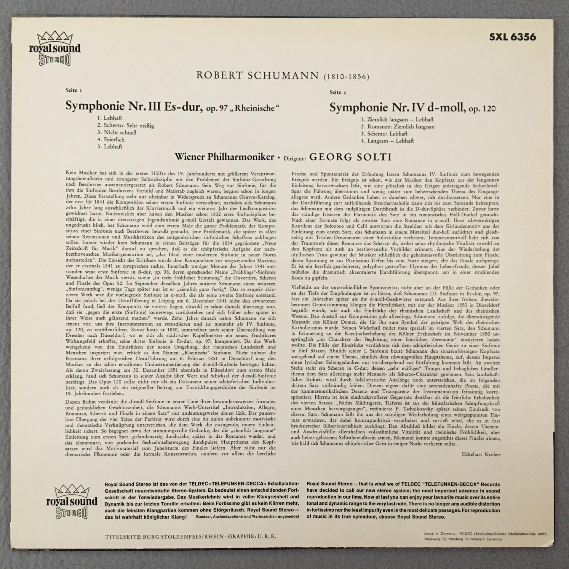 Q069 Schumann Symphonies No.3 & No.4 Solti VPO DECCA SXL 6356 Stereo