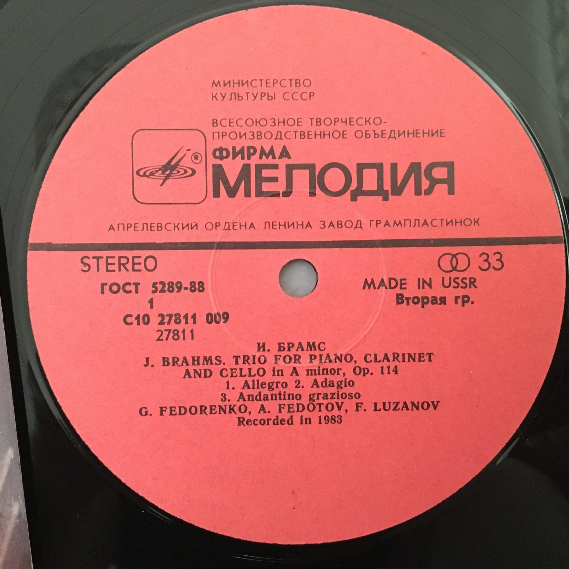 Q078 Schumann Fantasy Brahms Trio Luzanov Fedotov Melodiya C10 27811 009 Stereo