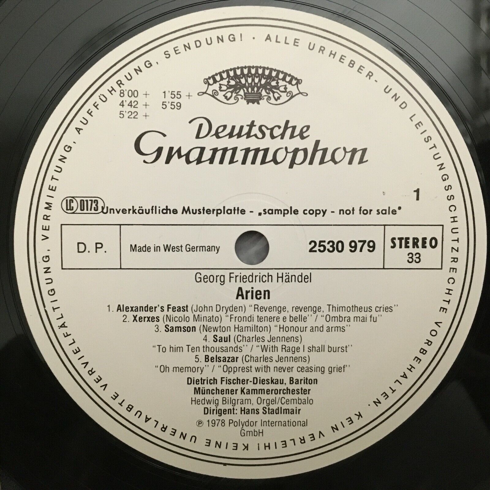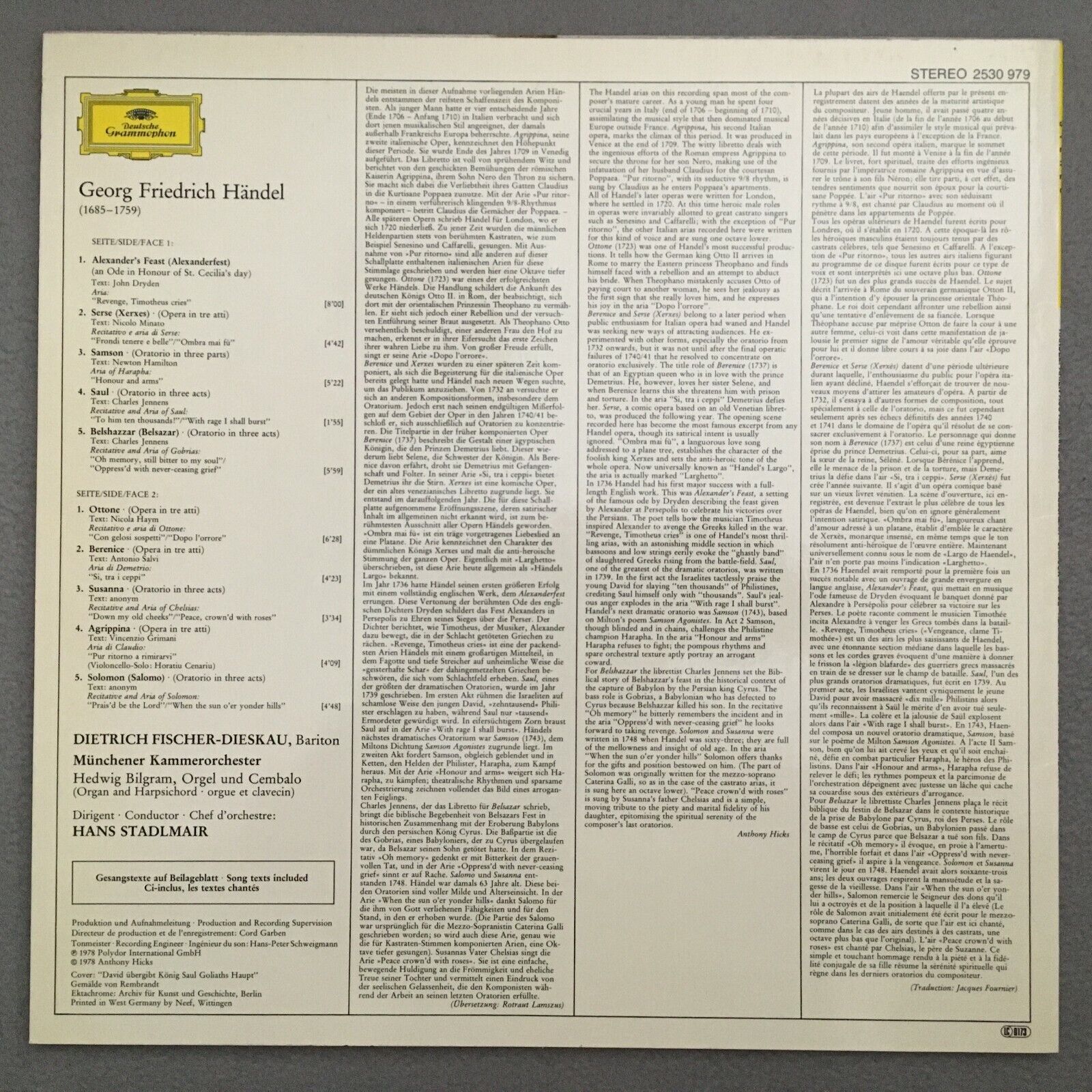V248 Handel Arias Fischer-Dieskau Bilgram Stadlmair DGG 2530 979 Stereo PROMO