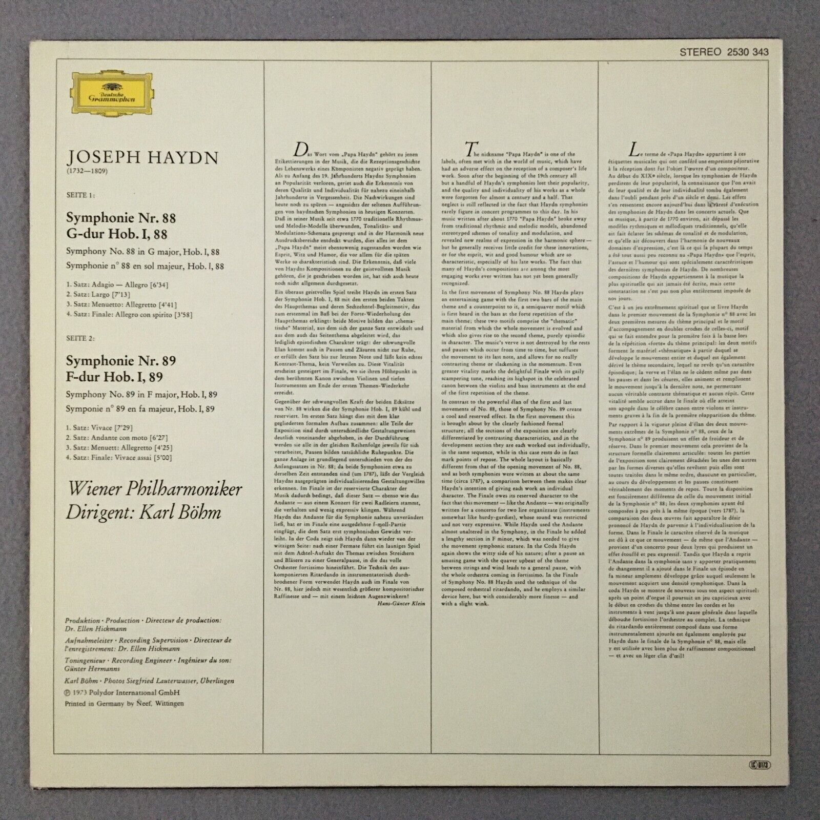 S439 Haydn Symphonies No.88 & No.89 Bohm VPO DGG 2530 343 Stereo