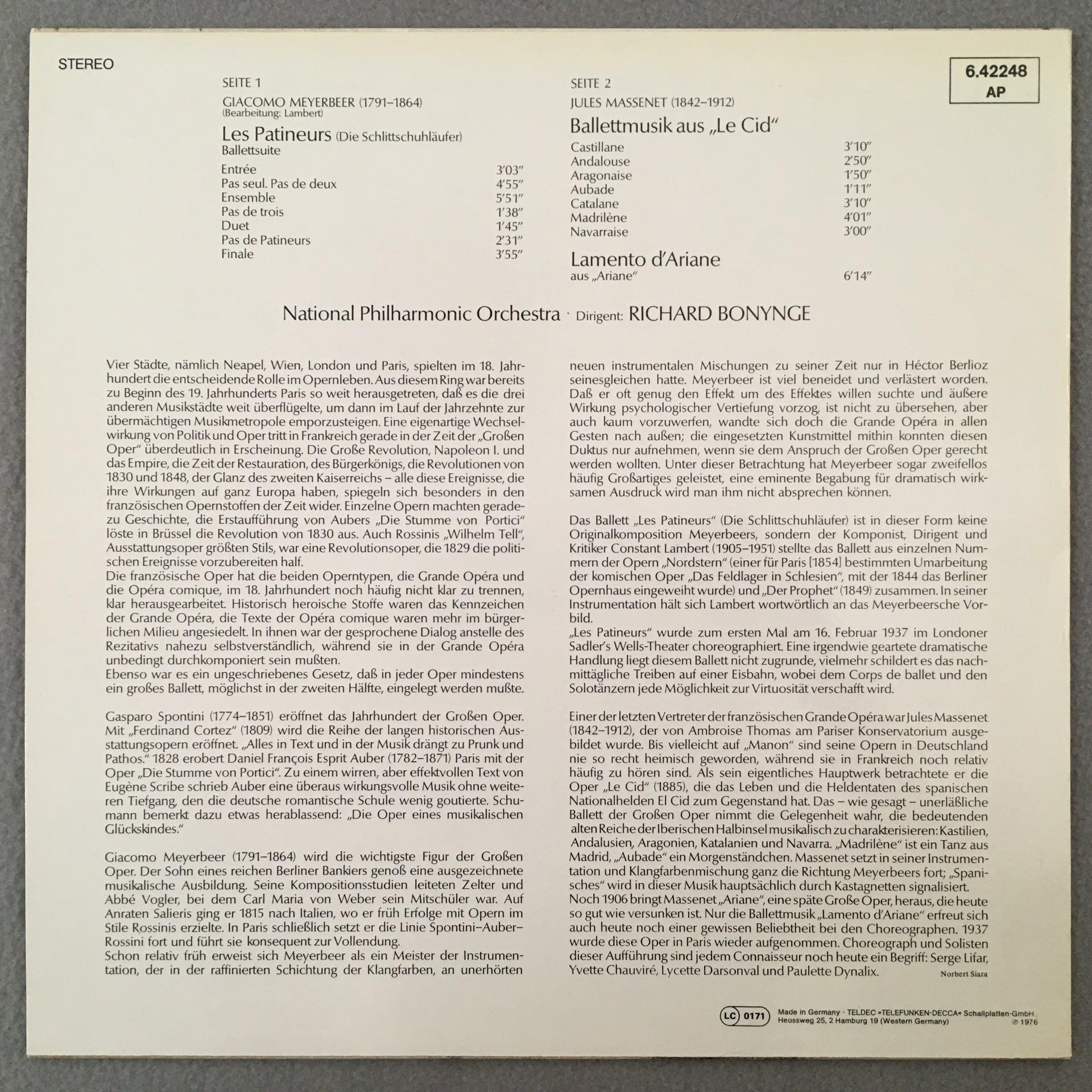 Q080 Meyerbeer Les Patineurs Massenet Le Cid Bonynge DECCA 6.42248 AP Stereo