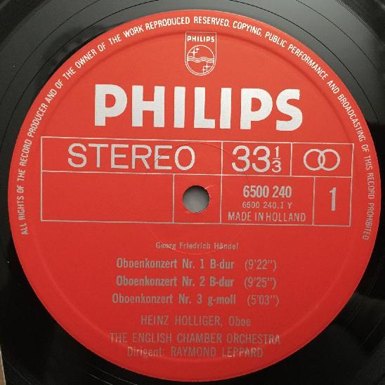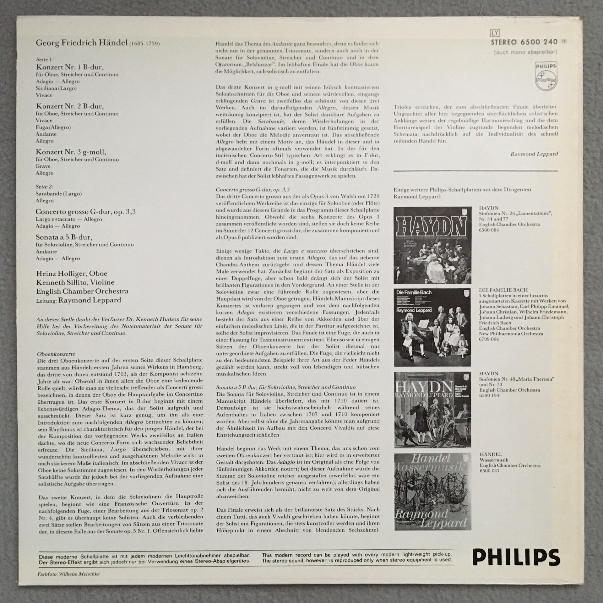 Q084 Handel Oboe Concertos Holliger Leppard Philips 6500 240 Stereo