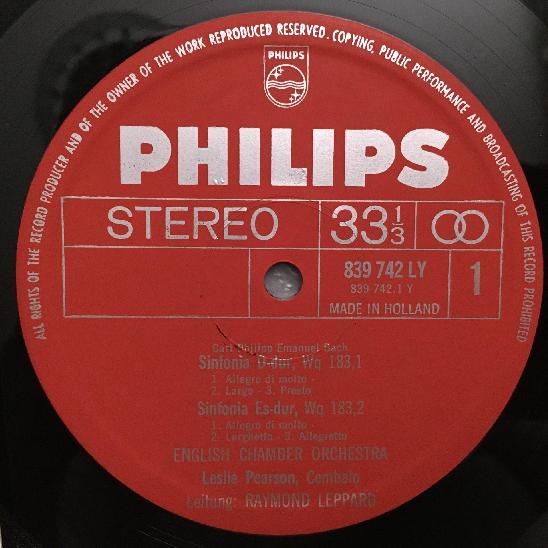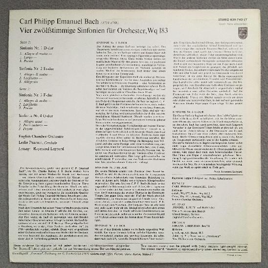 Q090 C.P.E. Bach Symphonies Pearson Leppard Philips 839 742 LY Stereo