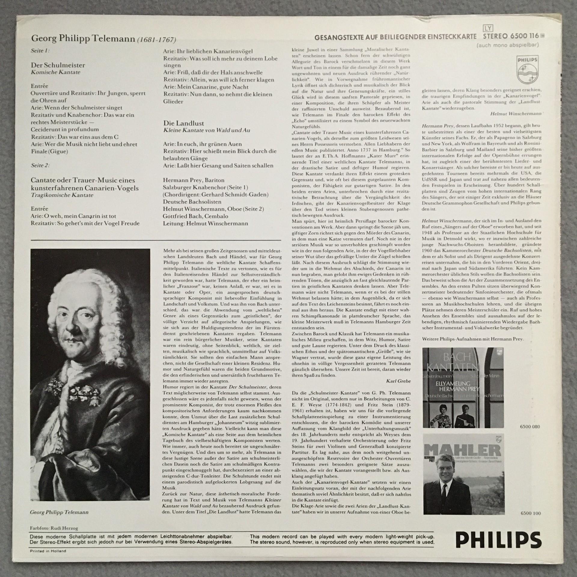 Q091 Telemann Kantatas Prey Winschermann Philips 6500 116 Stereo