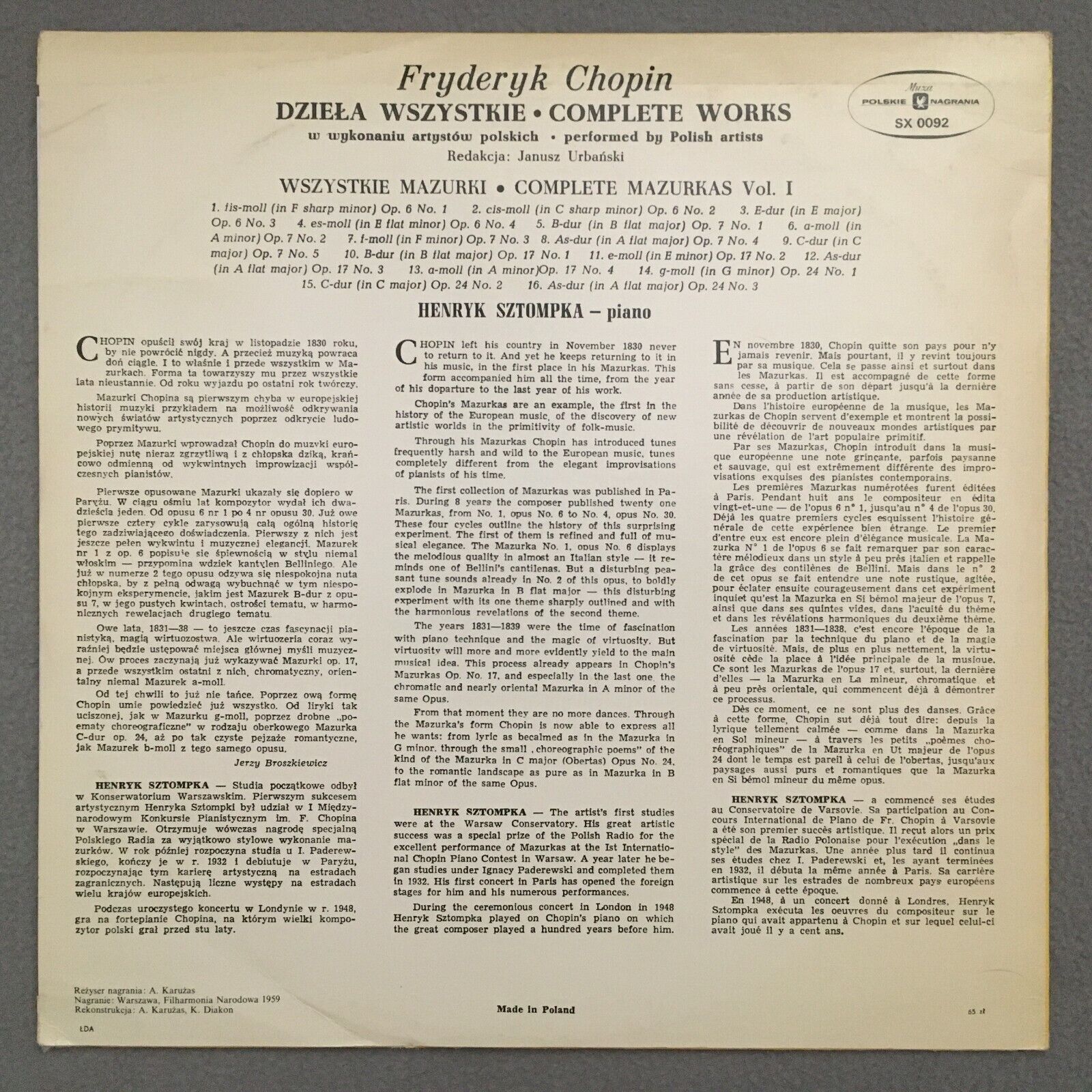 S437 Chopin Complete Mazurkas Vol.1 Sztompka Piano Muza SX 0092 Stereo