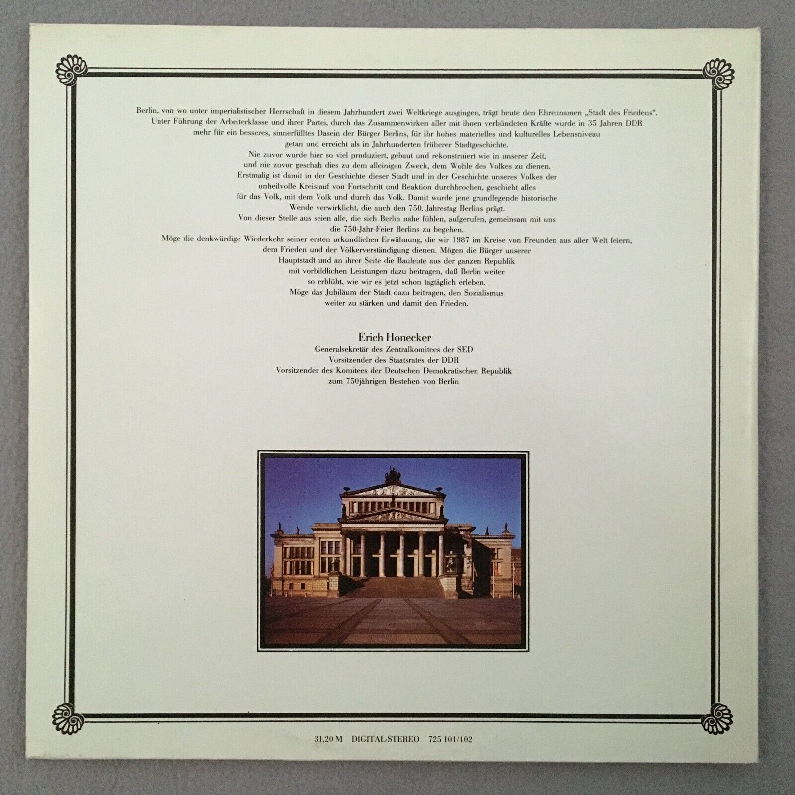 S426 Festive Opening Concerto Berlin Jan. 1987 2LP Eterna 725 101/102 Digital St