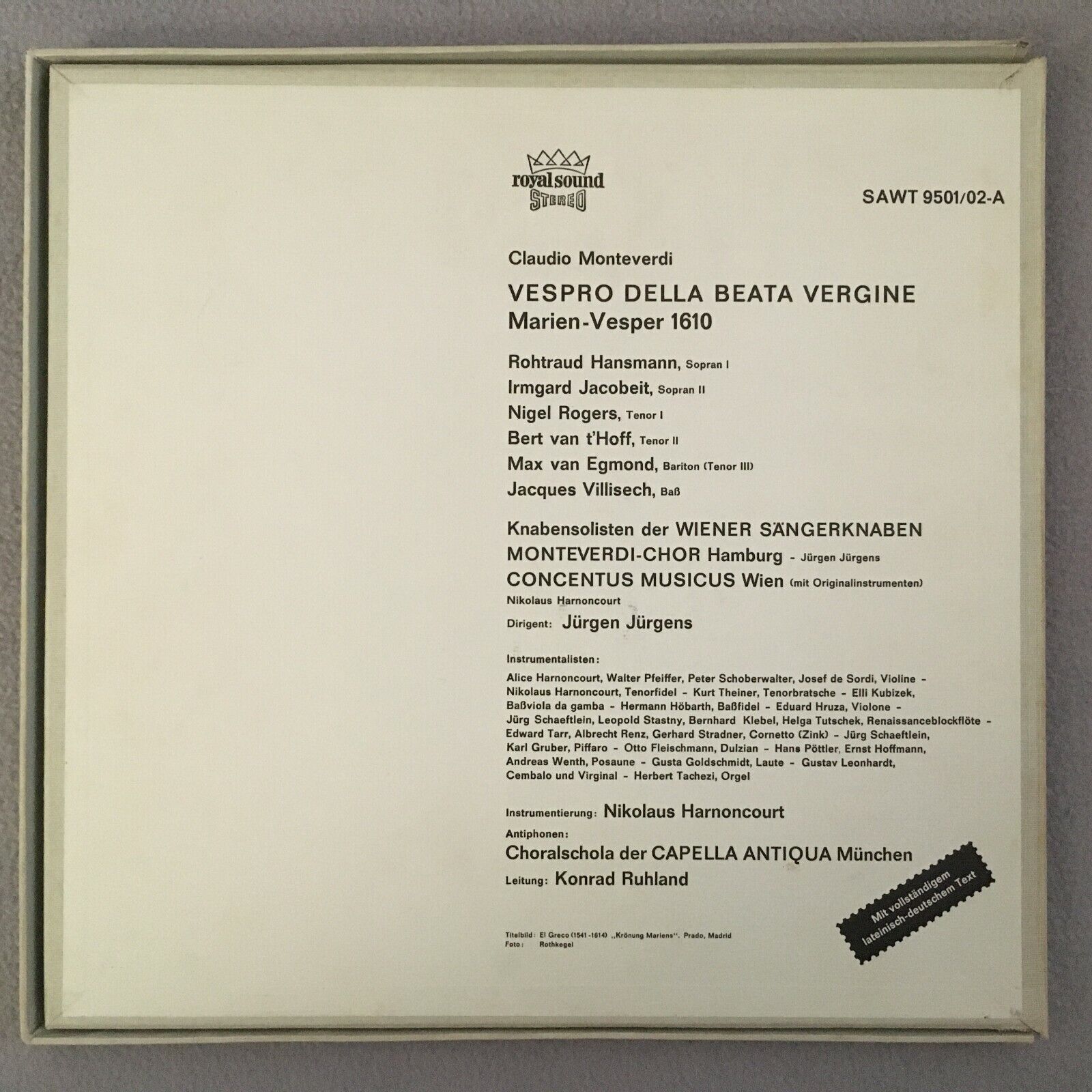 C004 Monteverdi Marien Vesper Harnoncourt 2LP Telefunken SAWT 9501/02-A Stereo