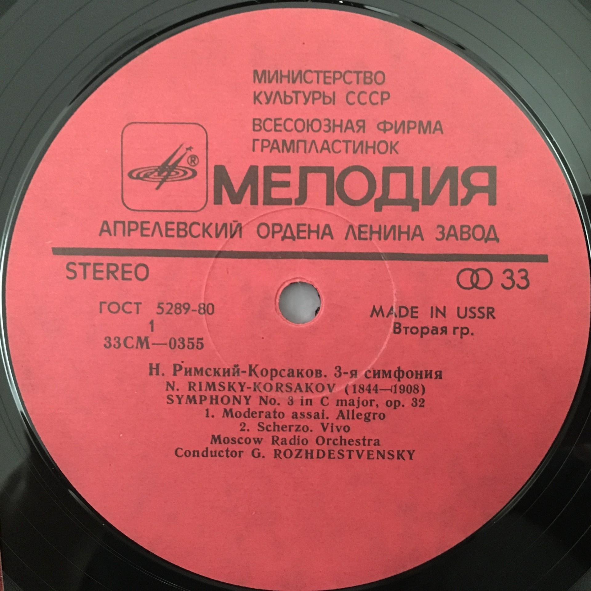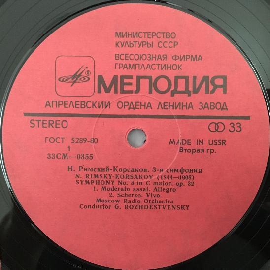 Q101 Rimsky-Korsakov Symphony No.3 Rozhdestvensky Melodiya CM 0355-56 Stereo