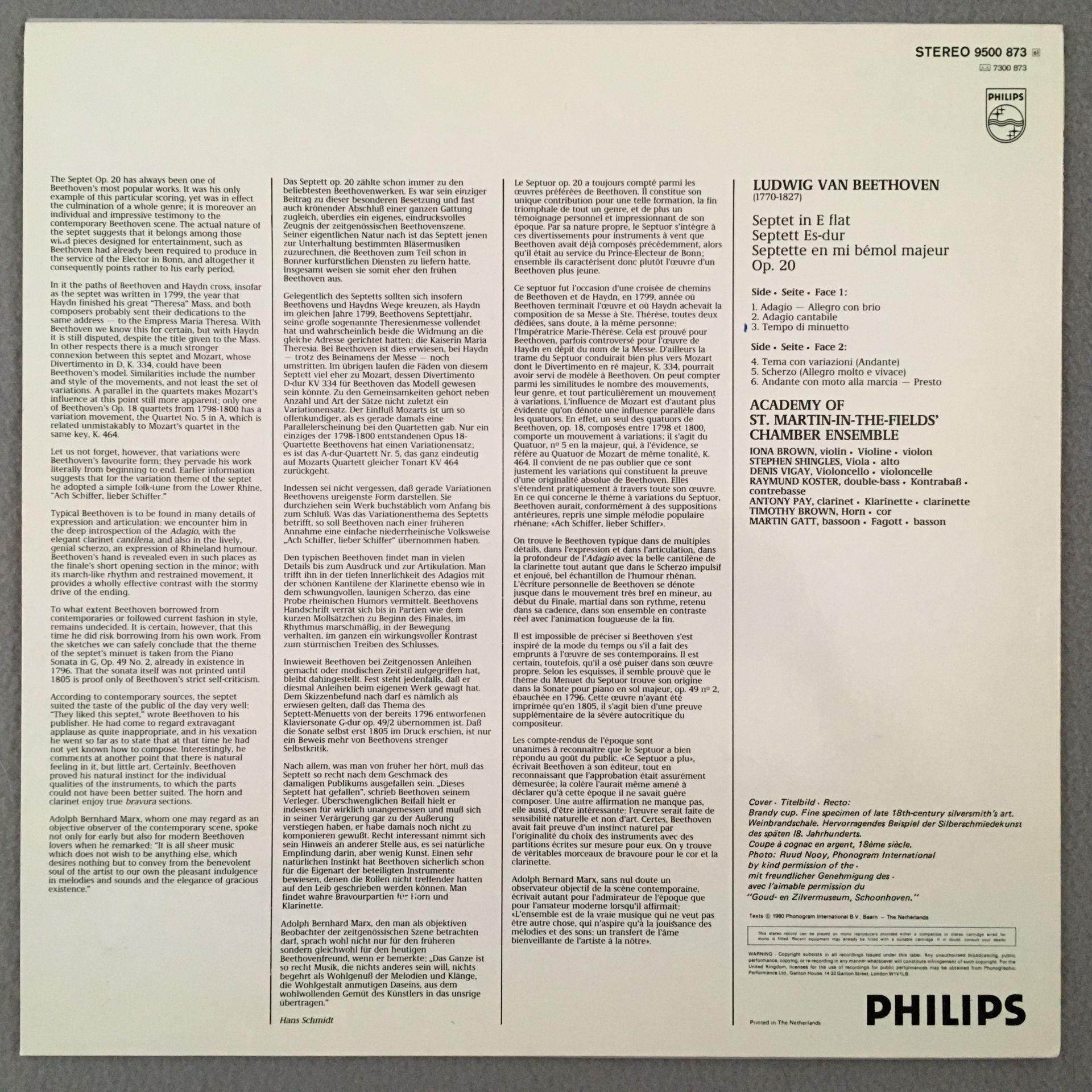 Q106 Beethoven Septet Op.20 Chamber Ensemble Brown Philips 9500 873 Stereo