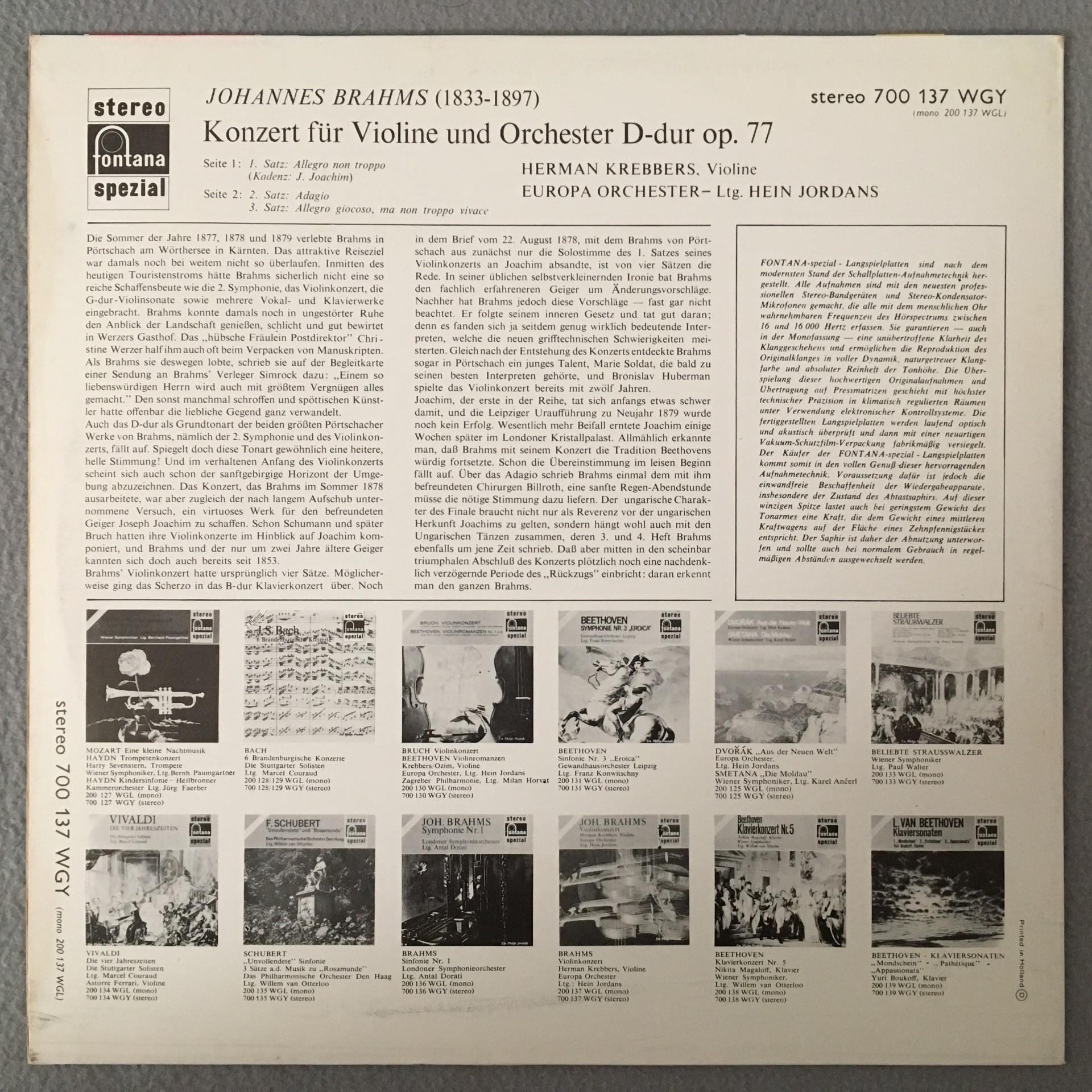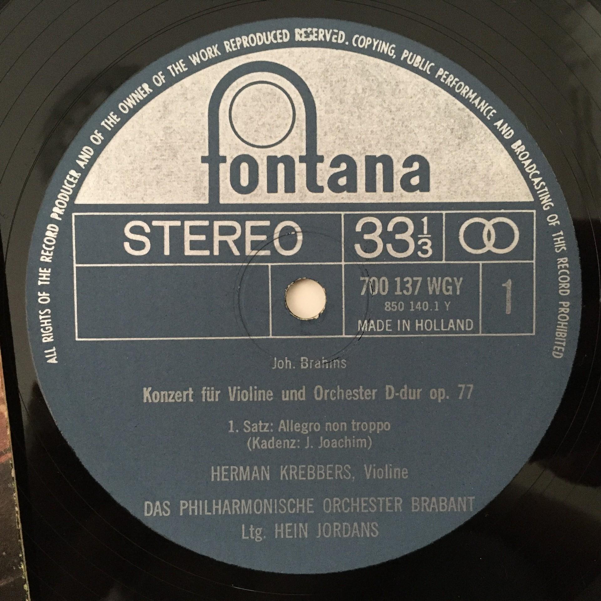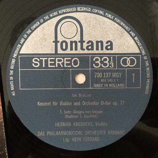 Q135 Brahms Violin Concerto Krebbers Jordans Fontana 700 137 WGY Stereo