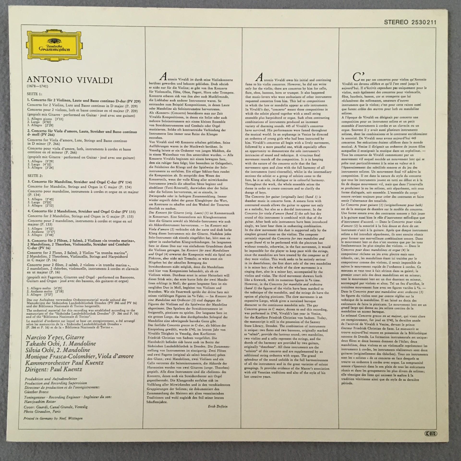 Q143 Vivaldi Complete Concertos for Lute & Mandolin Yepes Ochi DGG 2530 211 St