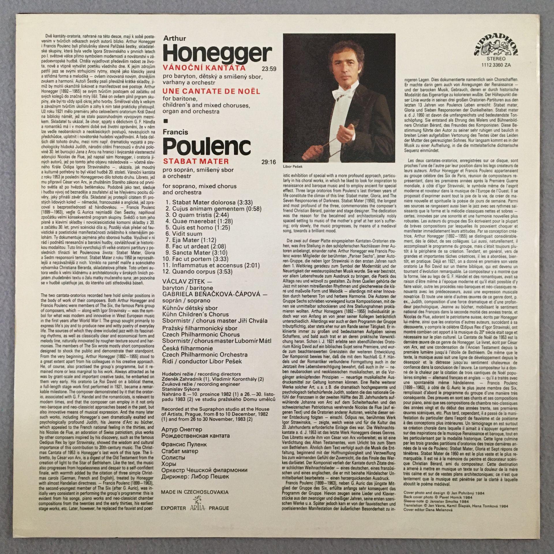 Q153 Honegger Cantata Poulenc Stabat Mater Pesek Supraphon 1112 3360 ZA Dig St