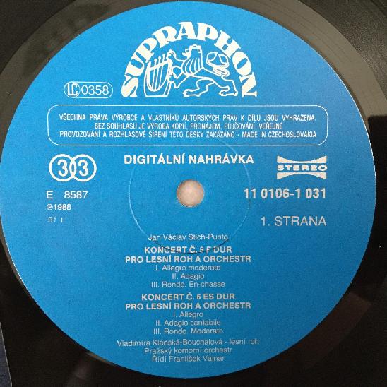 Q156 Stich-Punto Horn Concertos Klanska Vajnar Supraphon 11 0106-1 Digital Ster