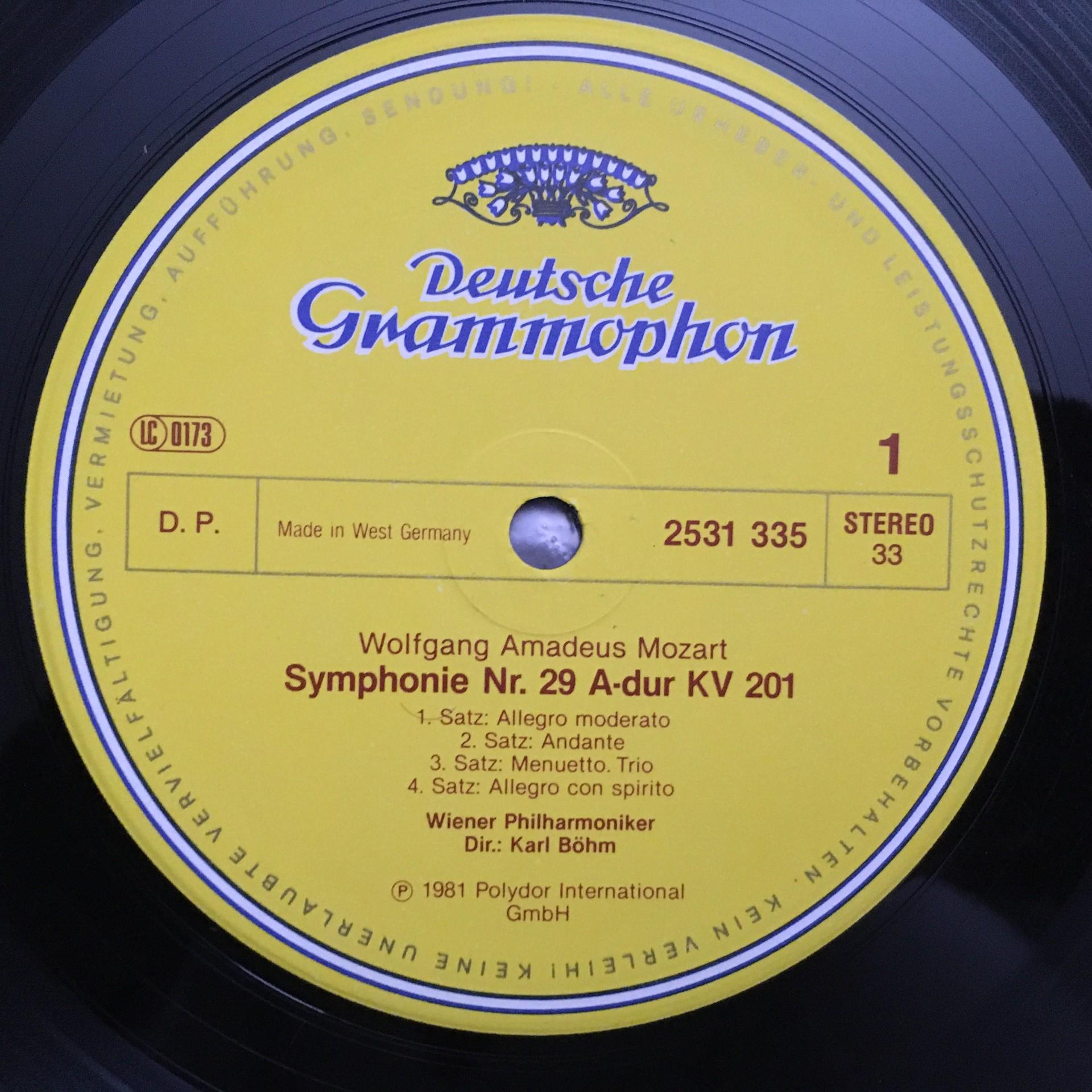R685 Mozart Symphonies No. 29 & No.35 Bohm VPO DGG 2531 335 Stereo