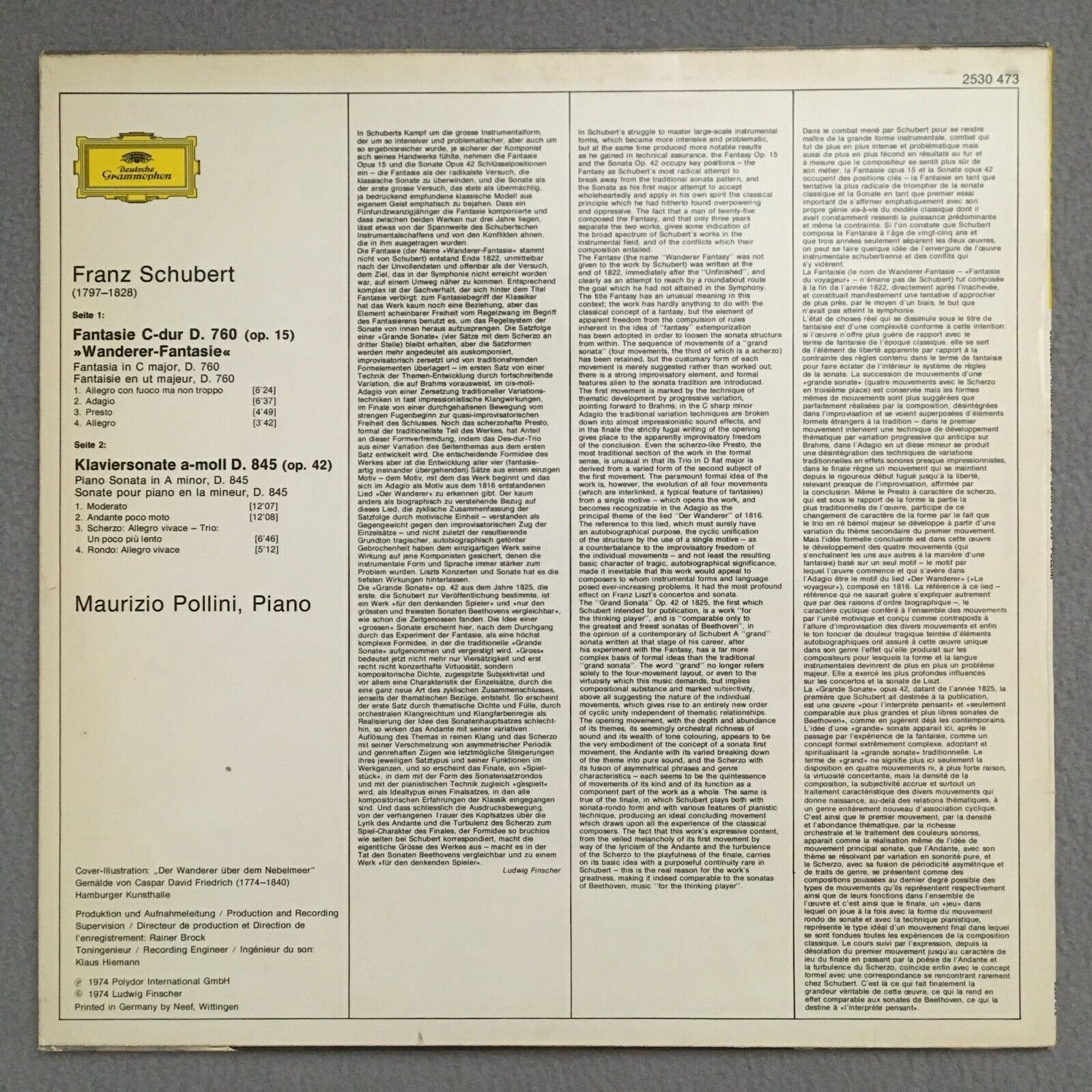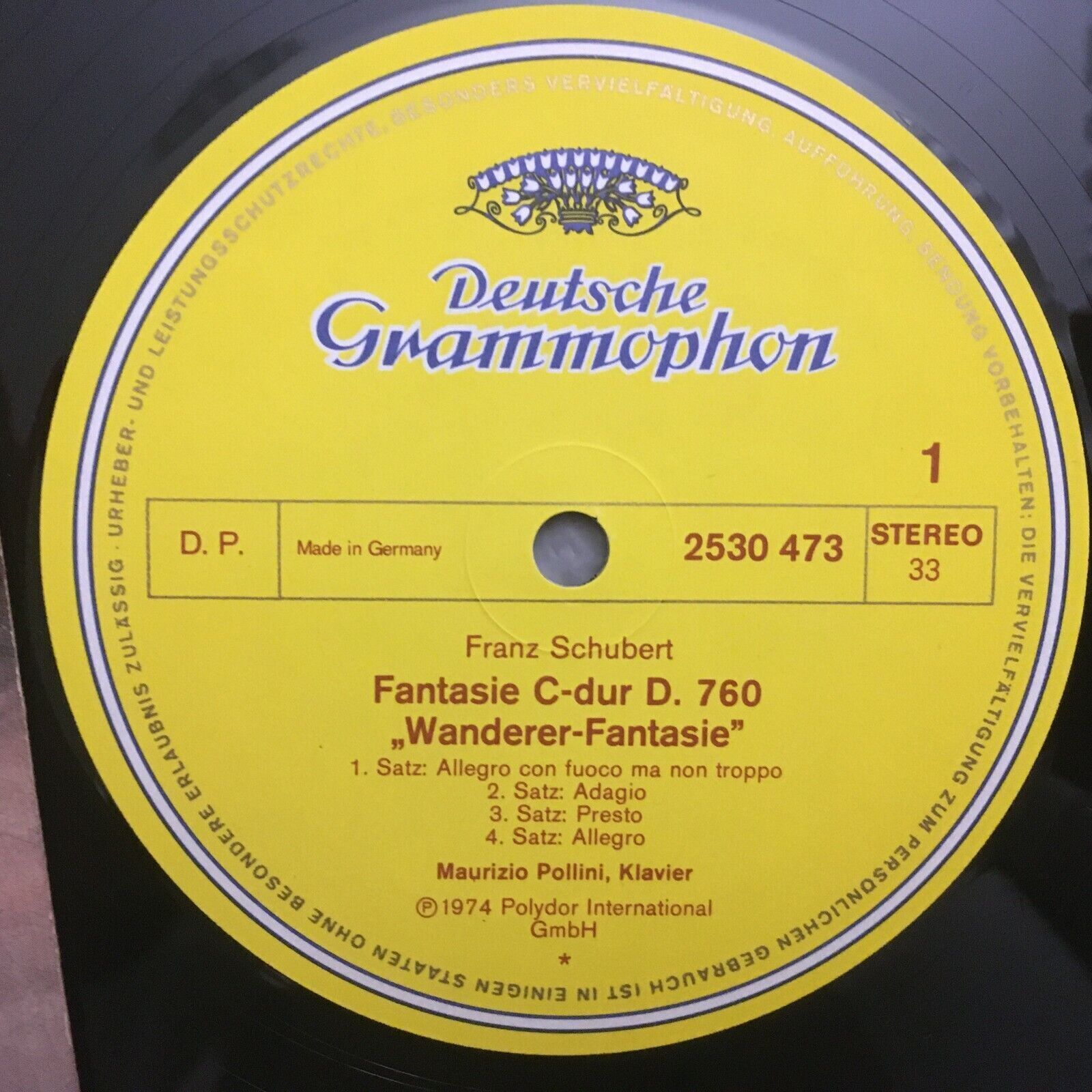 R688 Schubert Fantasy Piano Sonata Pollini Piano DGG 2530 473 Stereo