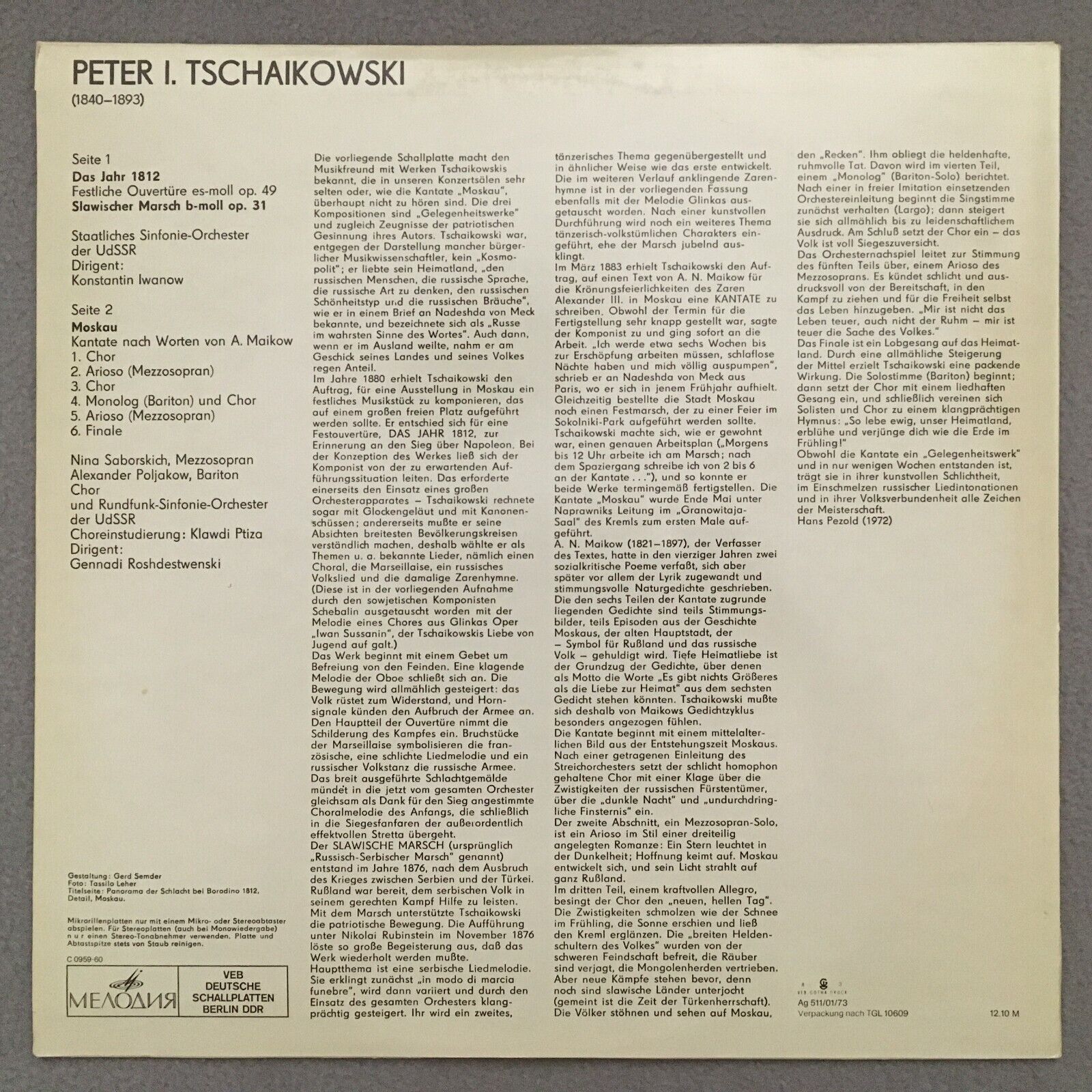 S409 Tchaikovsky Slavonic March Cantata Rozhdestvensky Eterna 8 26 236 Stereo