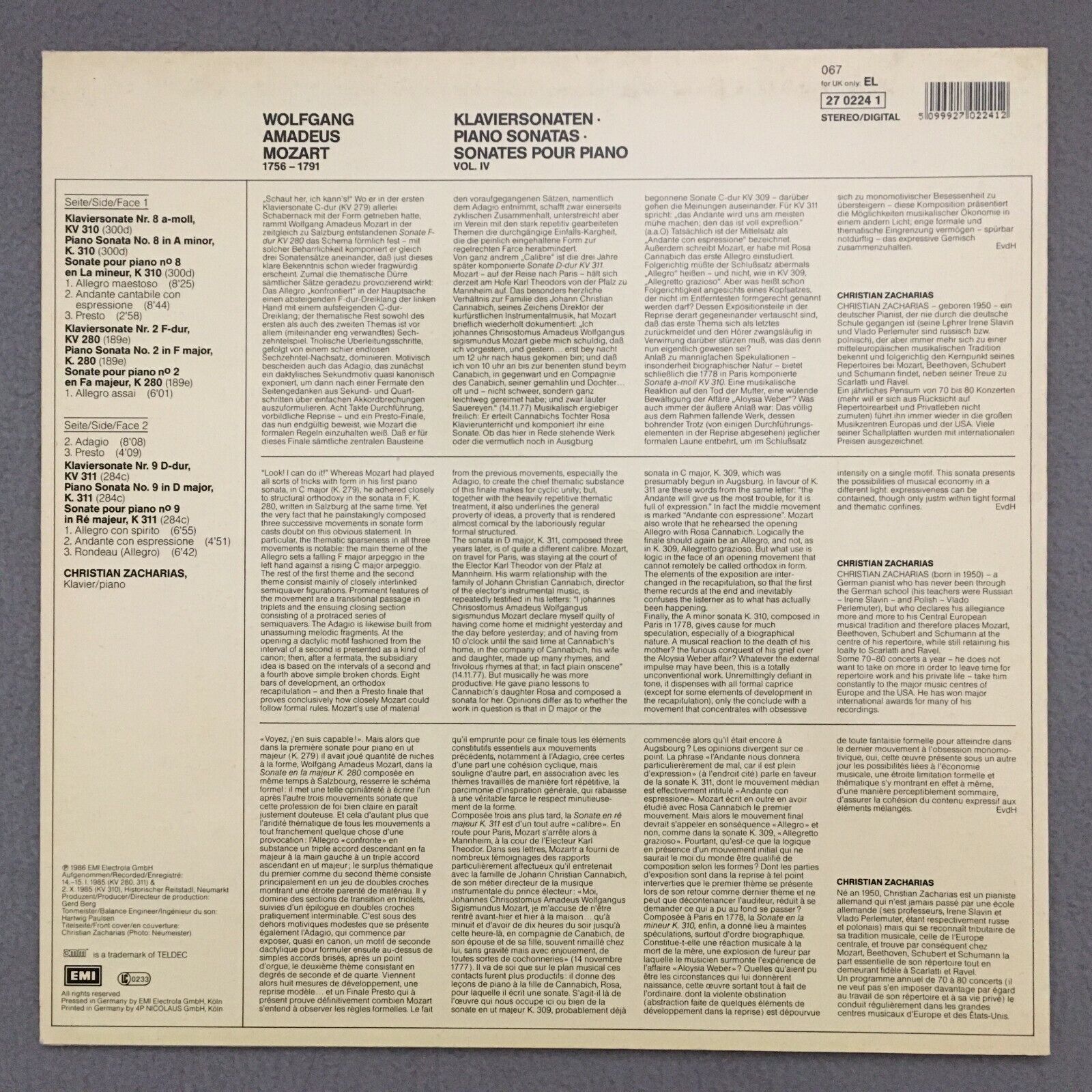 S402 Mozart Piano Sonatas Zacharias EMI 067 27 0224 1 Digital Stereo