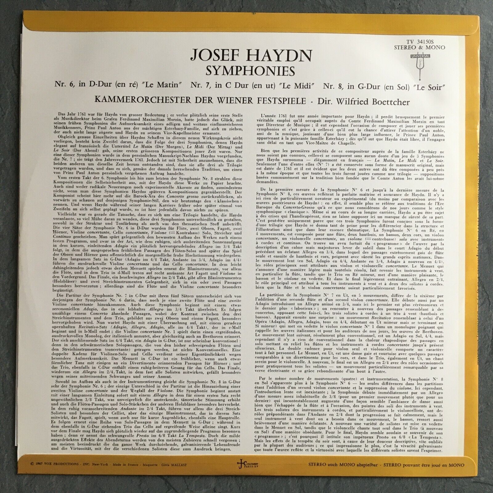 S397 Haydn Symphonies No.6 & No.7 & No.8 Boettcher Turnabout TV 341505 Stereo