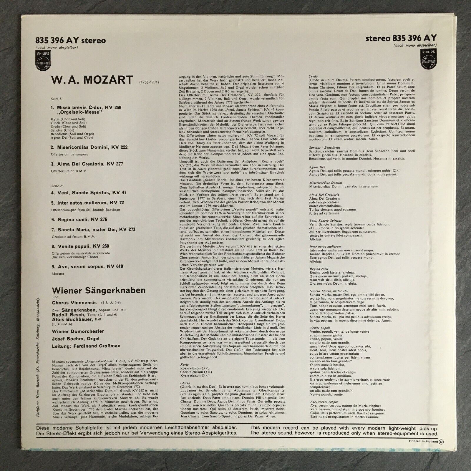 S395 Mozart Organ Solo Mass Vienna Boy´s Choir Großman Philips 835 396 AY Stereo