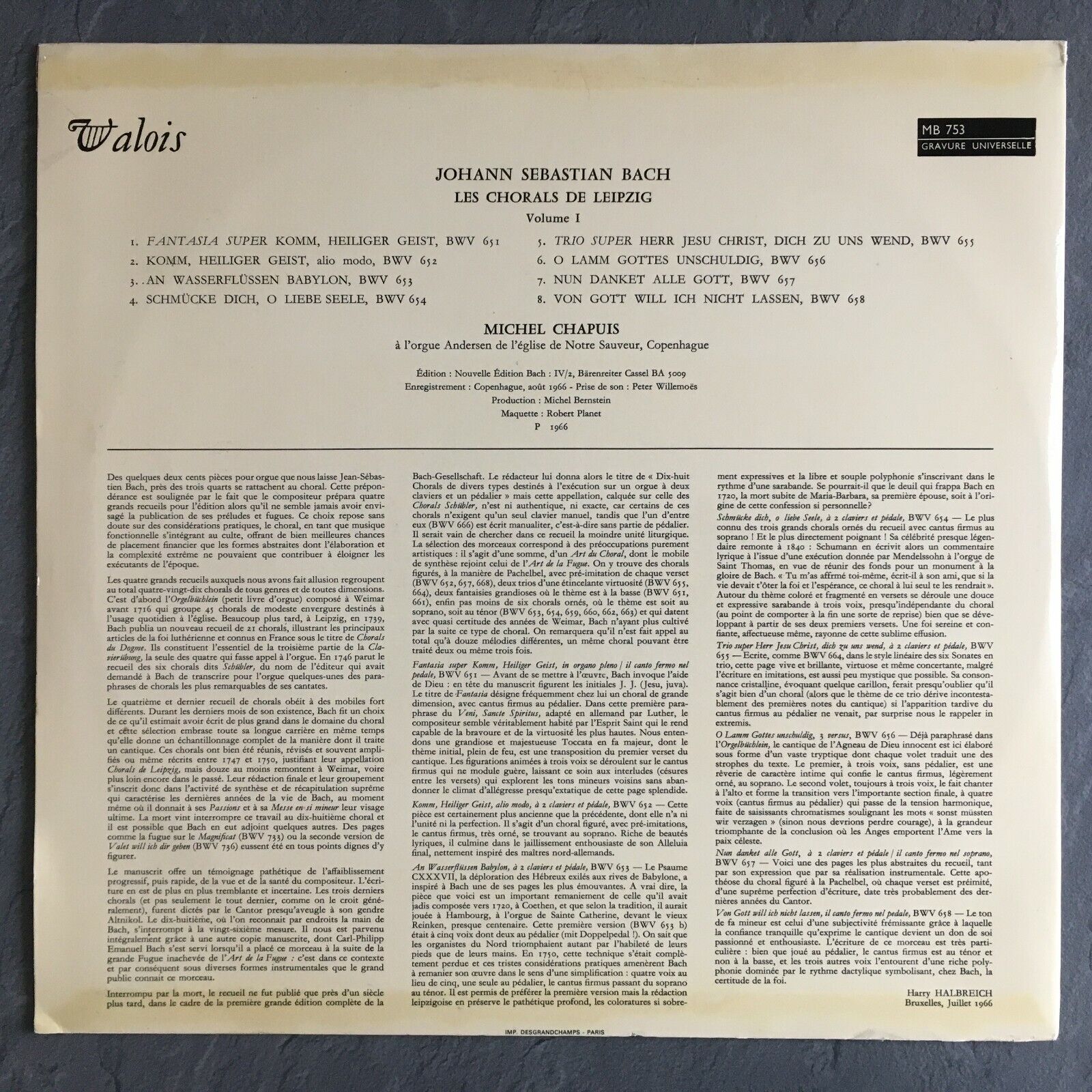 S393 Bach Les Chorals de Leipzig Vol.1 BWV 651/658 Chapuis Valois MB 753 Stereo