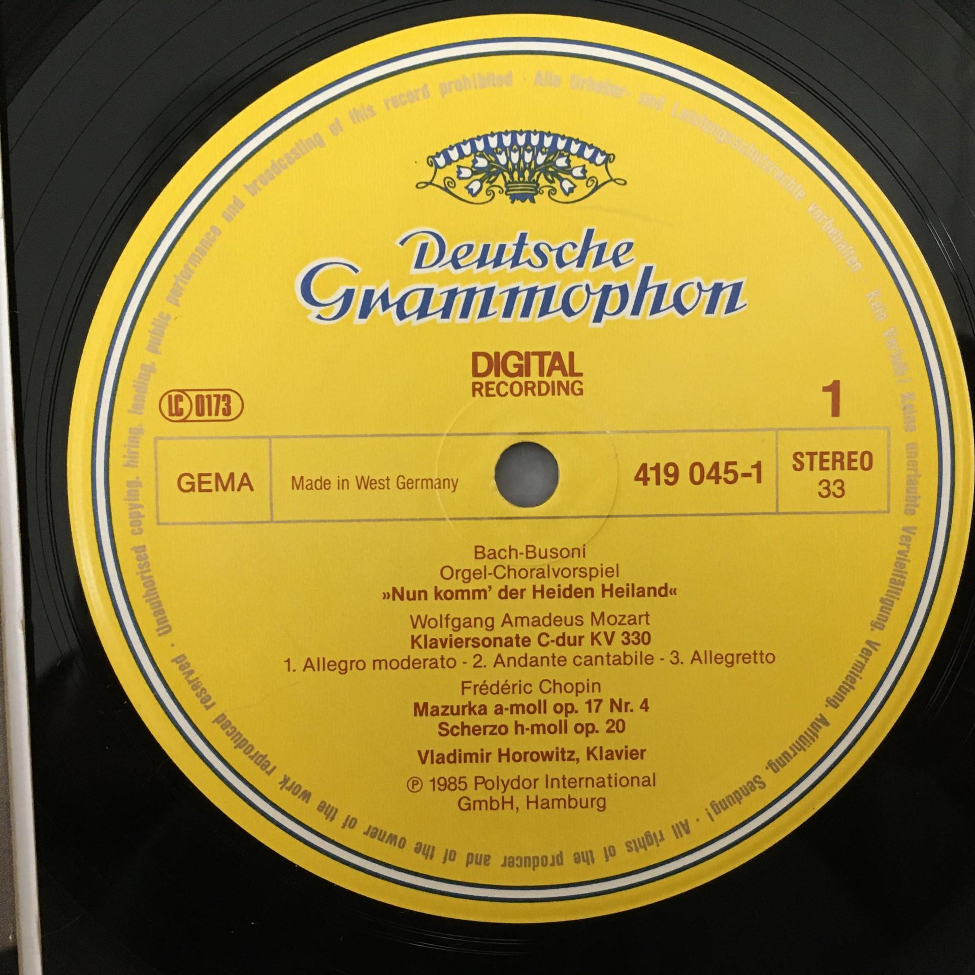 Q163 Horowitz Piano Bach Busoni Chopin Liszt Mozart DGG 419 045-1 Digital Stereo