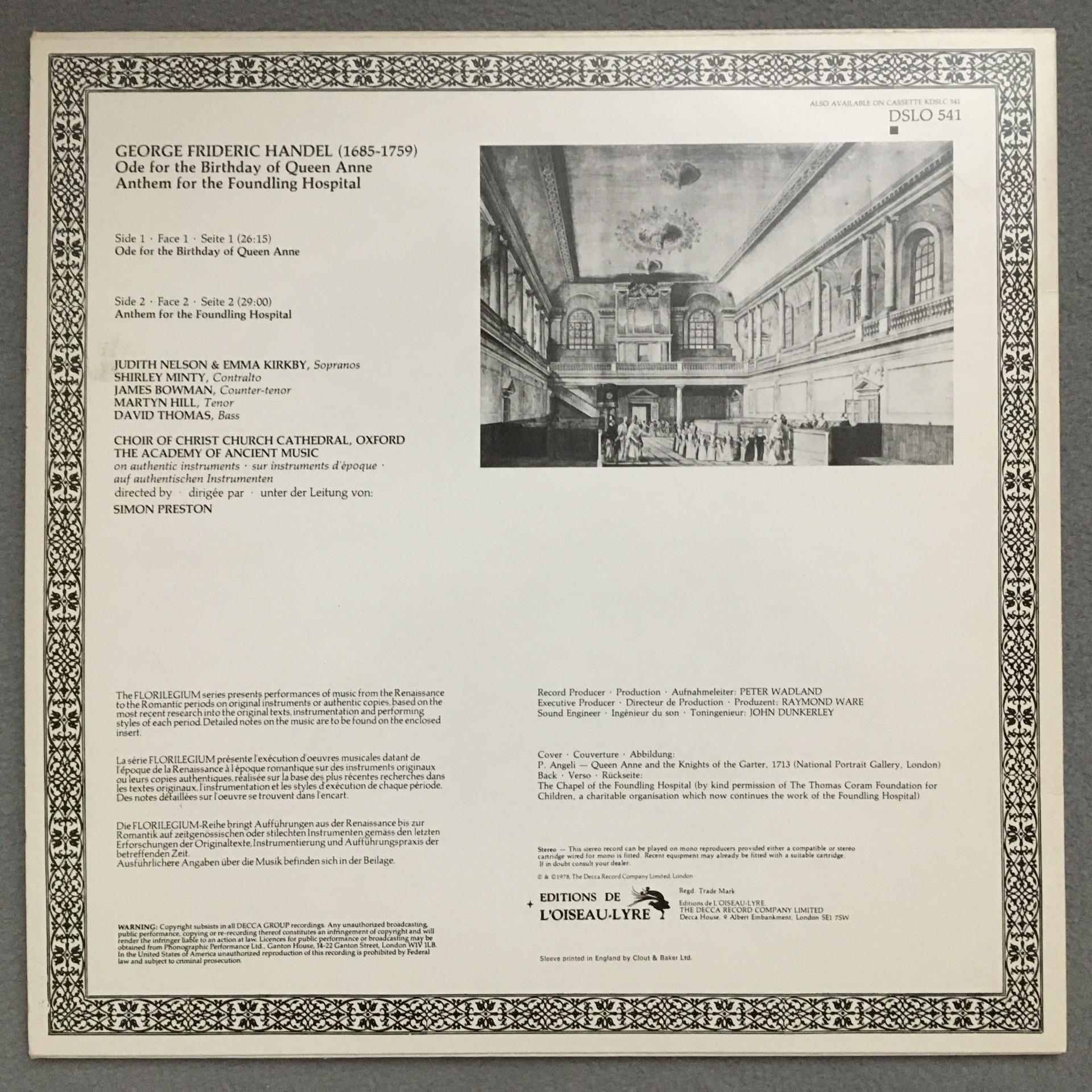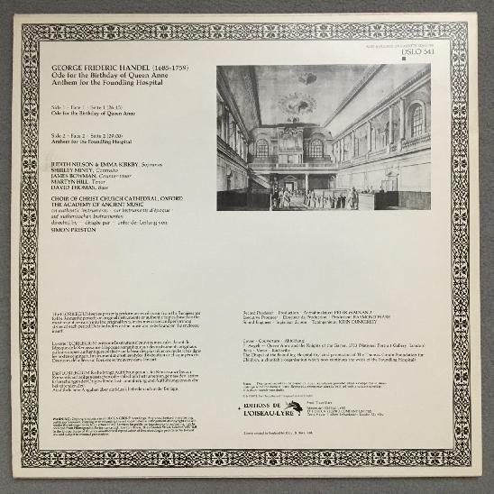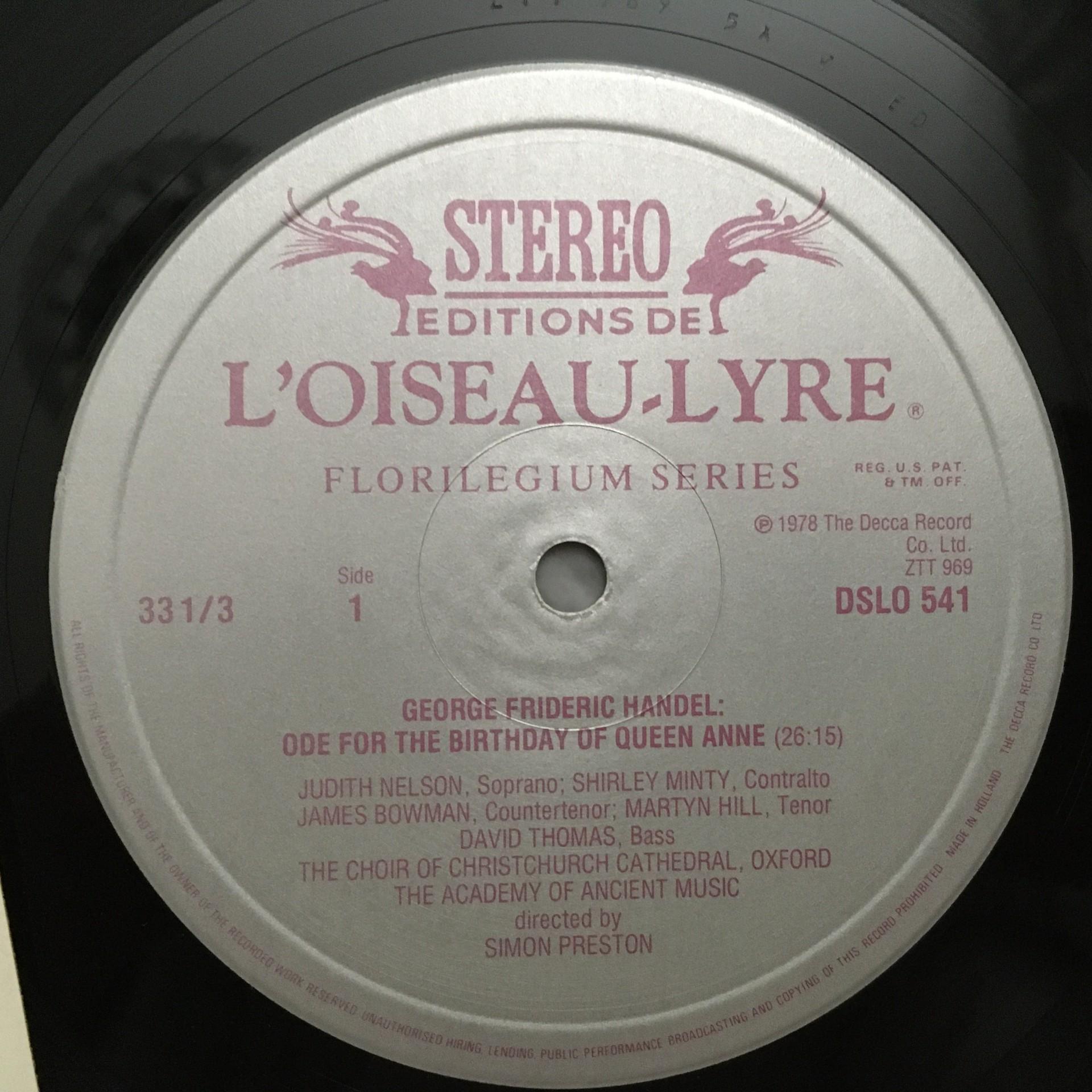 Q168 Handel Ode for the Birthday of Queen Anne Preston L´Oiseau-Lyre DSLO 541 St