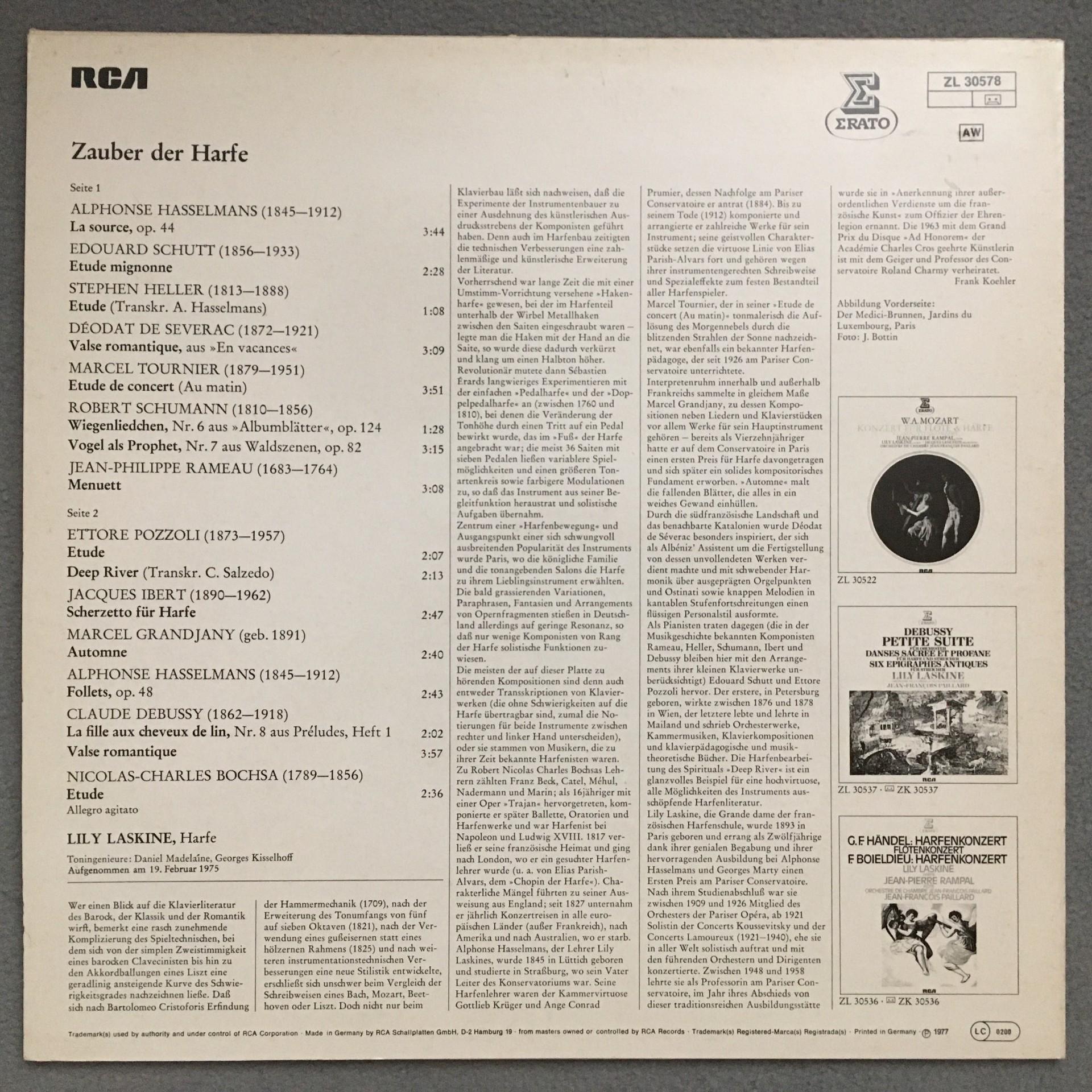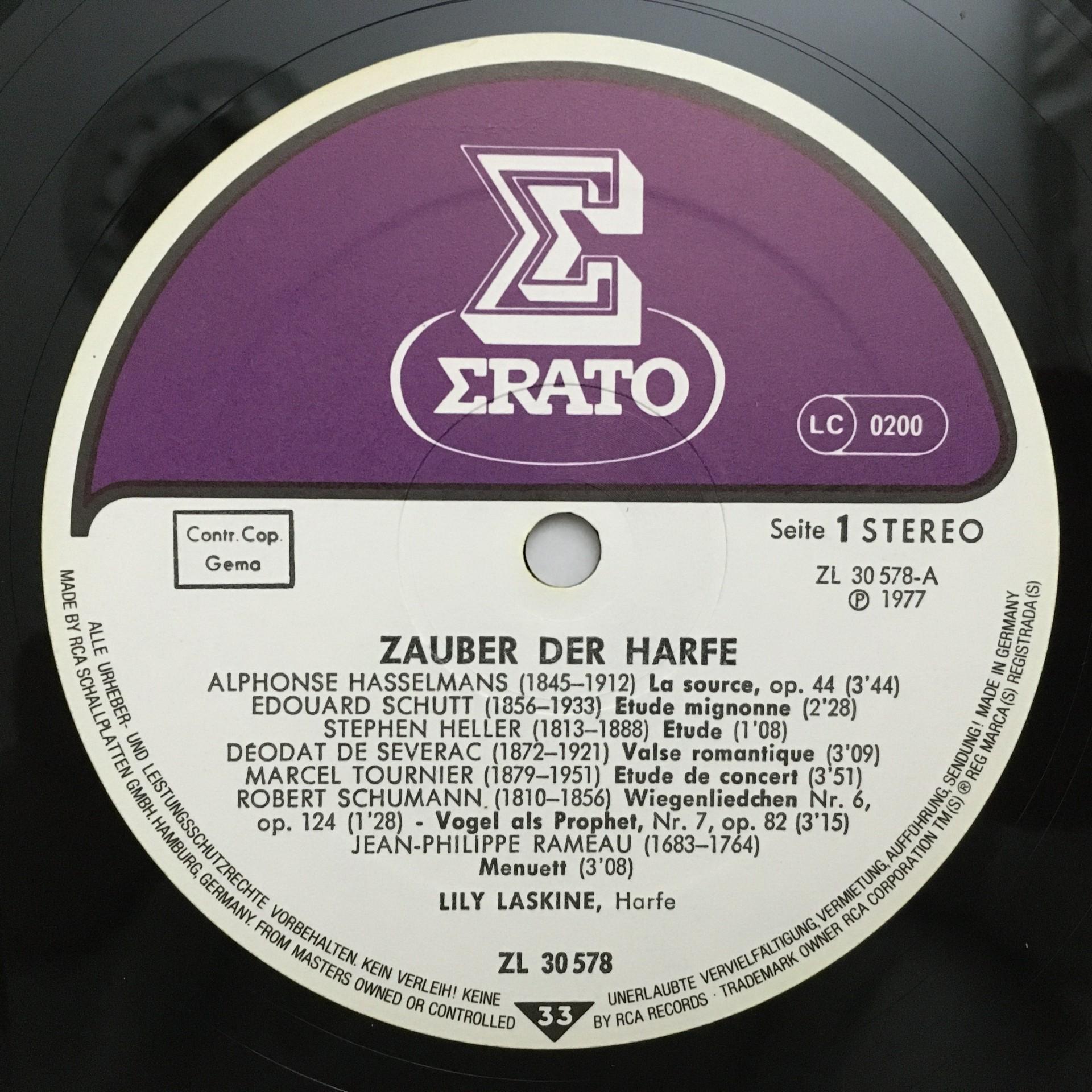 Q169 Magic Harp Laskine plays Schumann Debussy Rameau Erato ZL 30578 Stereo