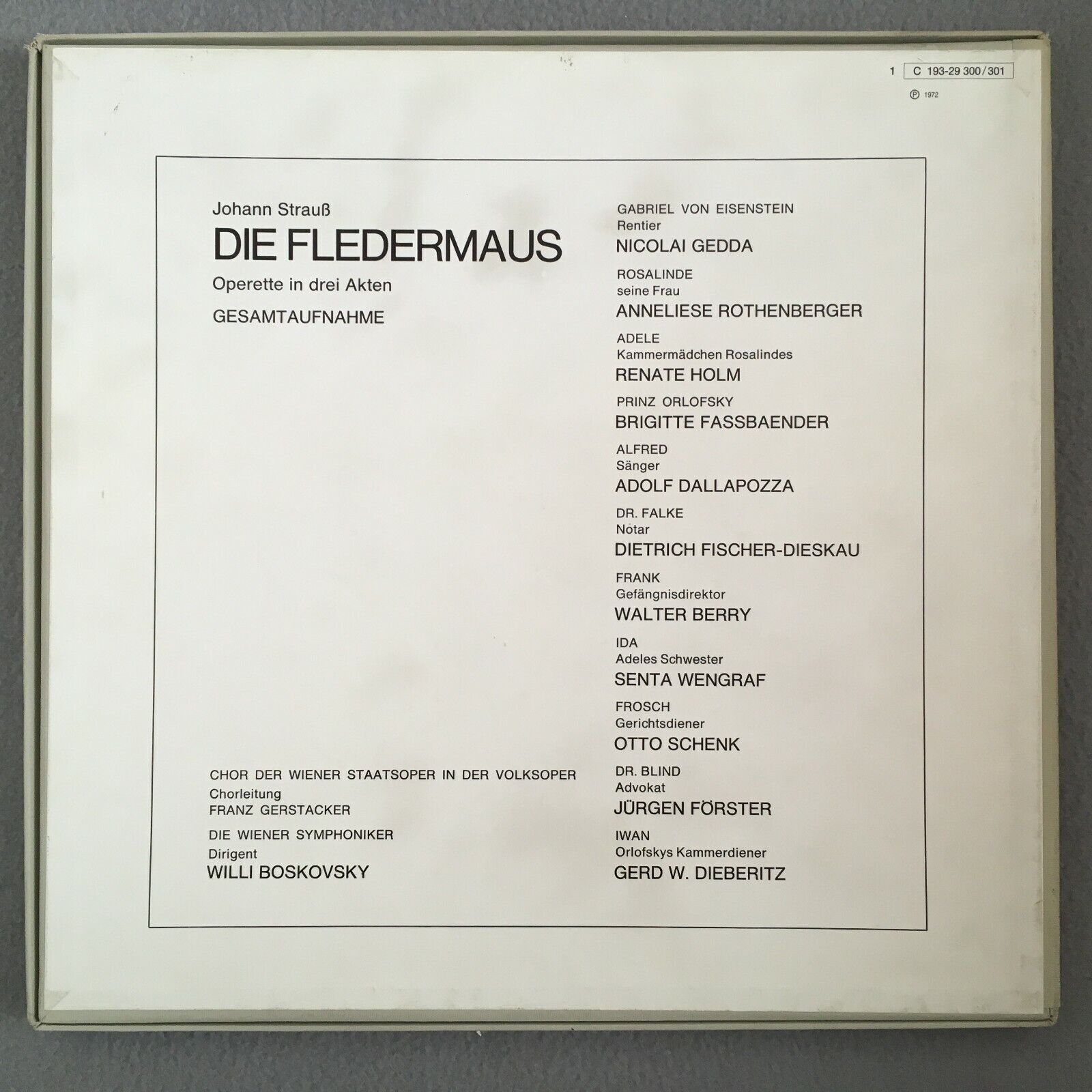 C439 J. Strauss Fledermaus Rothenberger Boskovsky 2LP EMI 1 C 193-29 300/301 St
