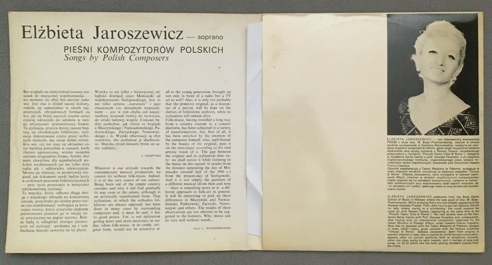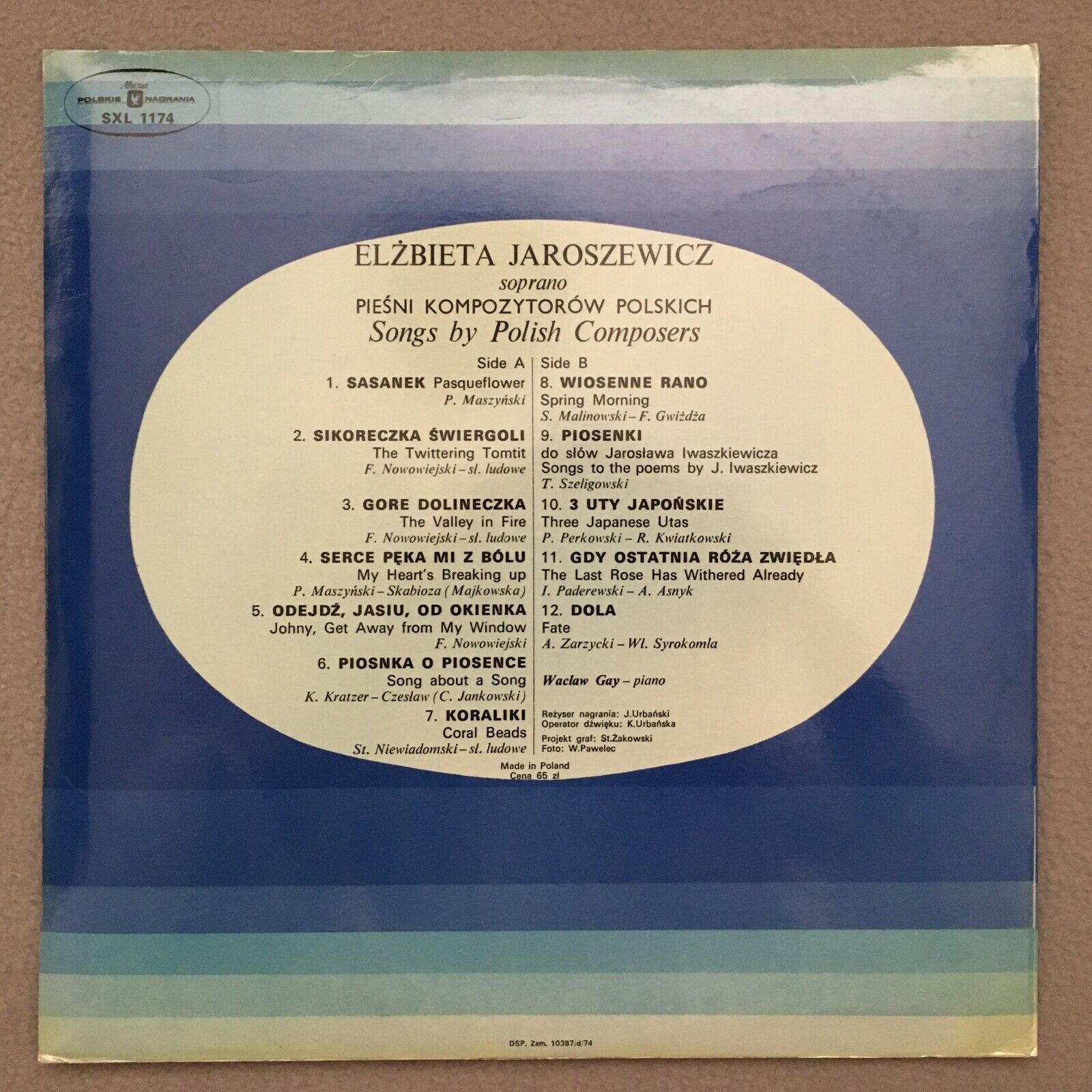 S381 Elzbieta Jaroszewicz Songs by Polish Composers MUZA SXL 1174 Stereo