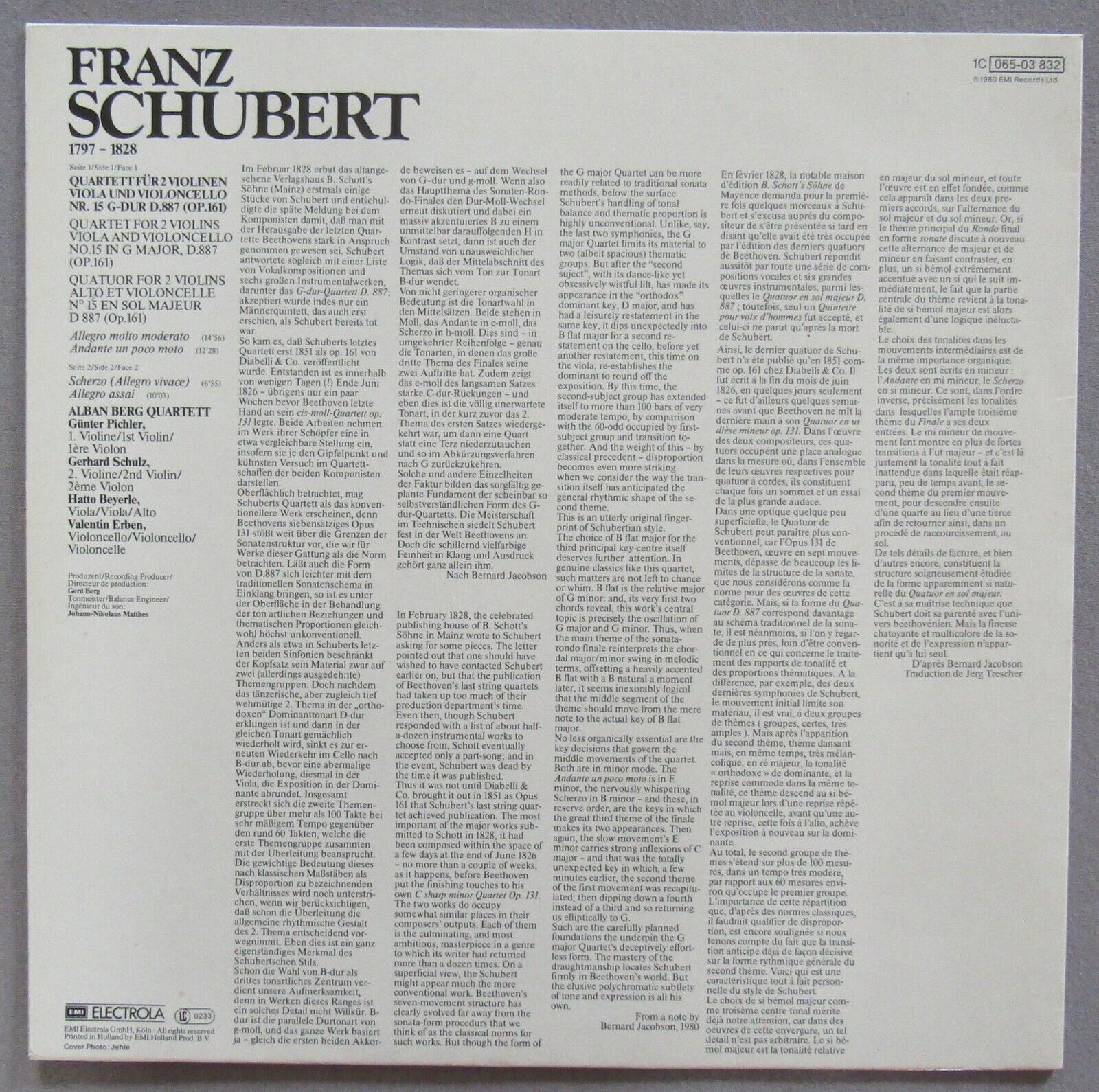 J192 Schubert String Quartet No.15 Alban Berg Quartet EMI 1C 065-03 832 Stereo
