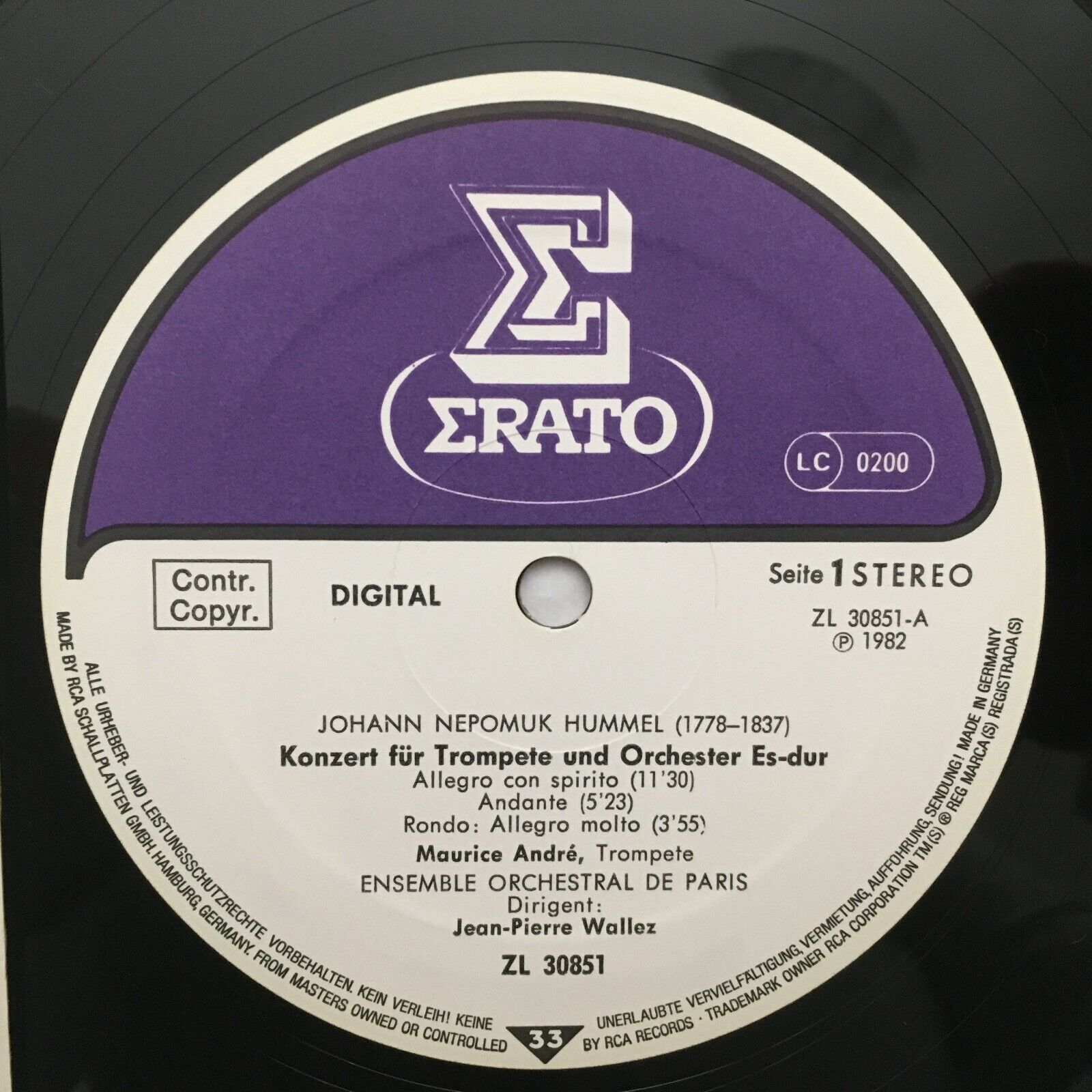 S280 Hummel Telemann Trumpet Concertos Andre Wallez Erato ZL 30851 Digital St