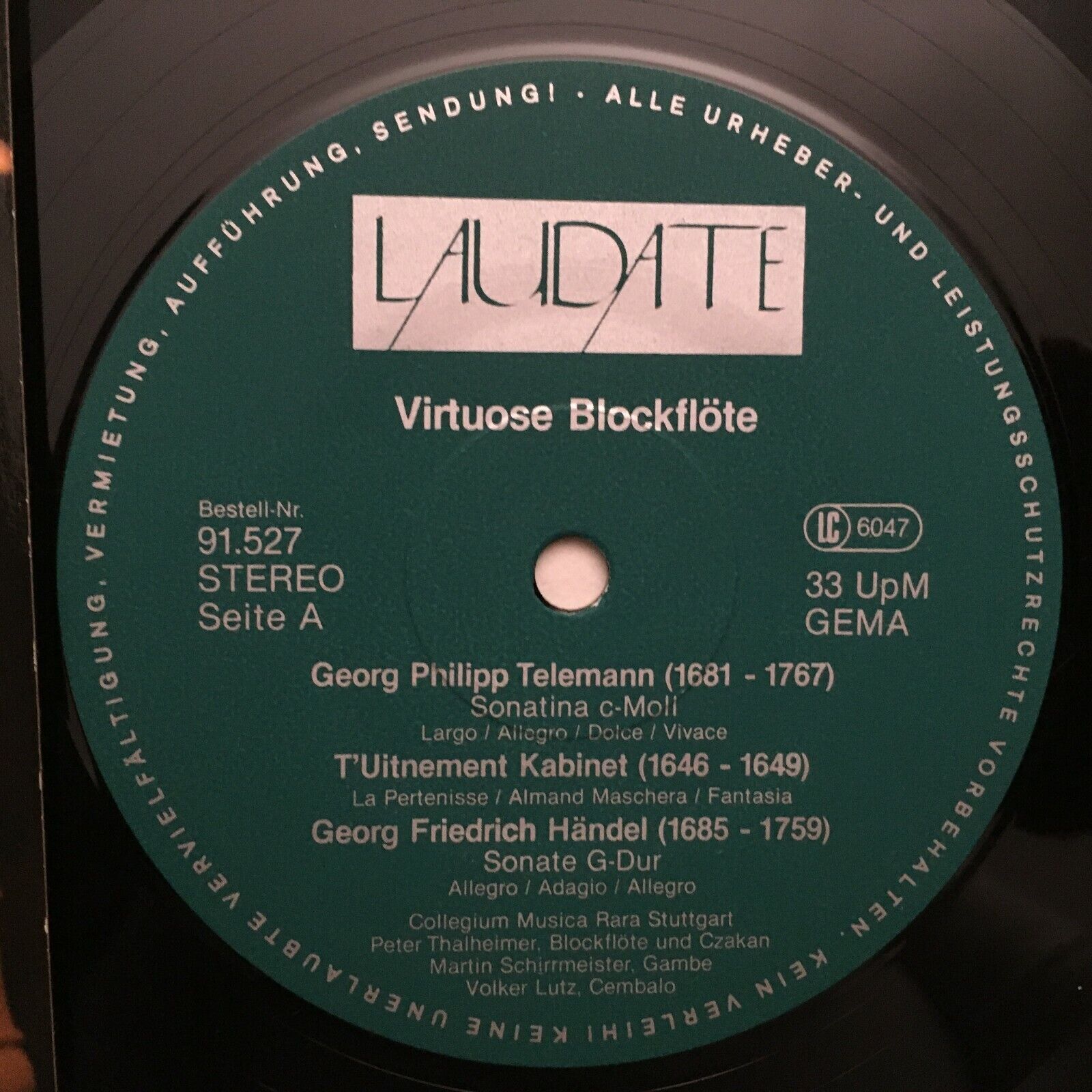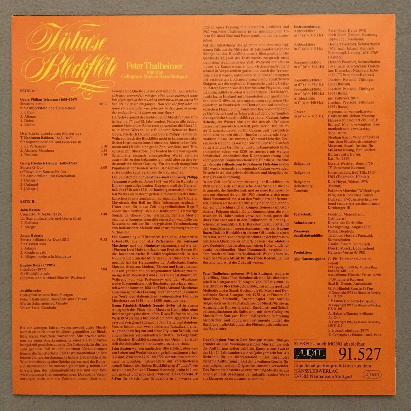 S279 Virtuose Recorder Thalheimer Telemann Handel Laudate 91.527 Stereo