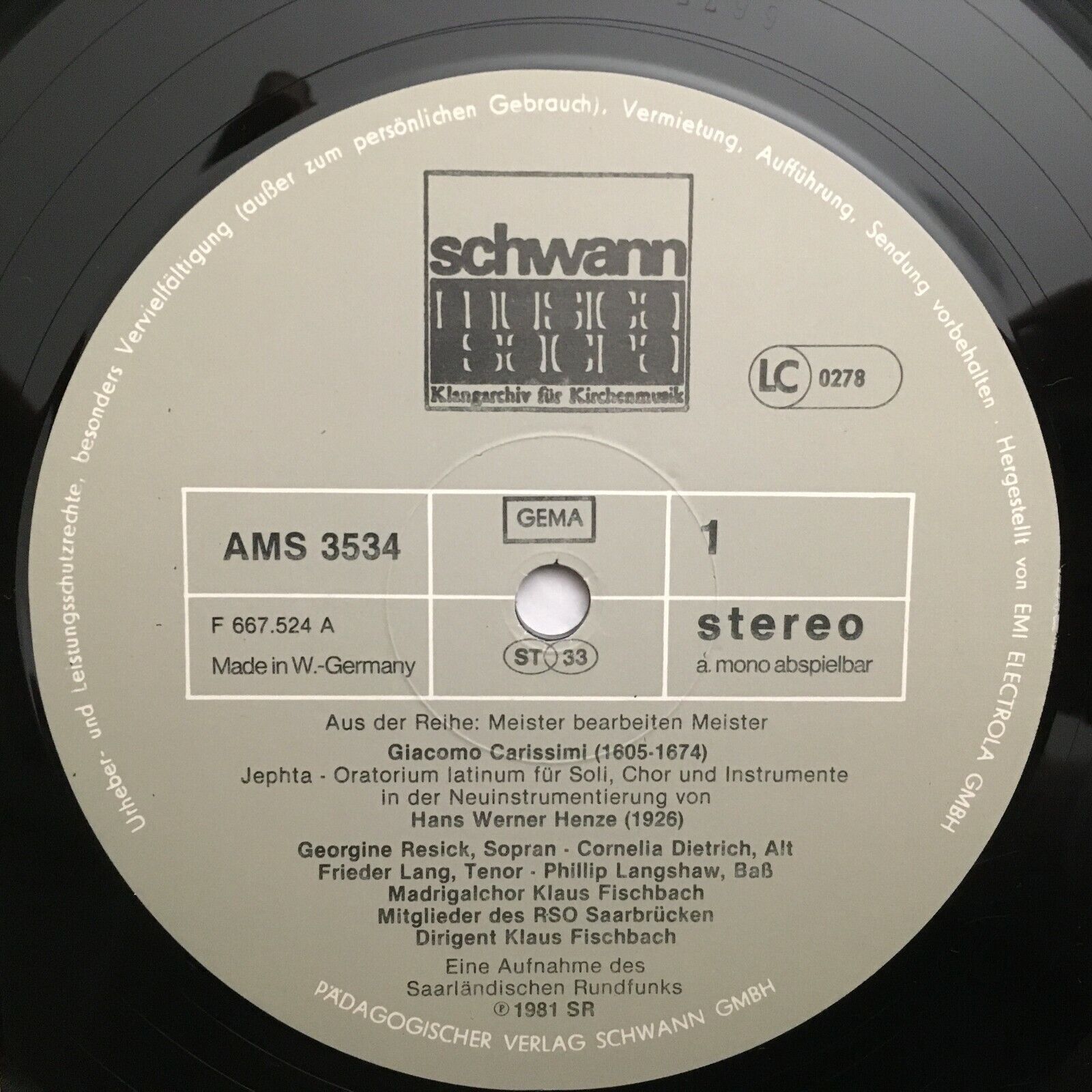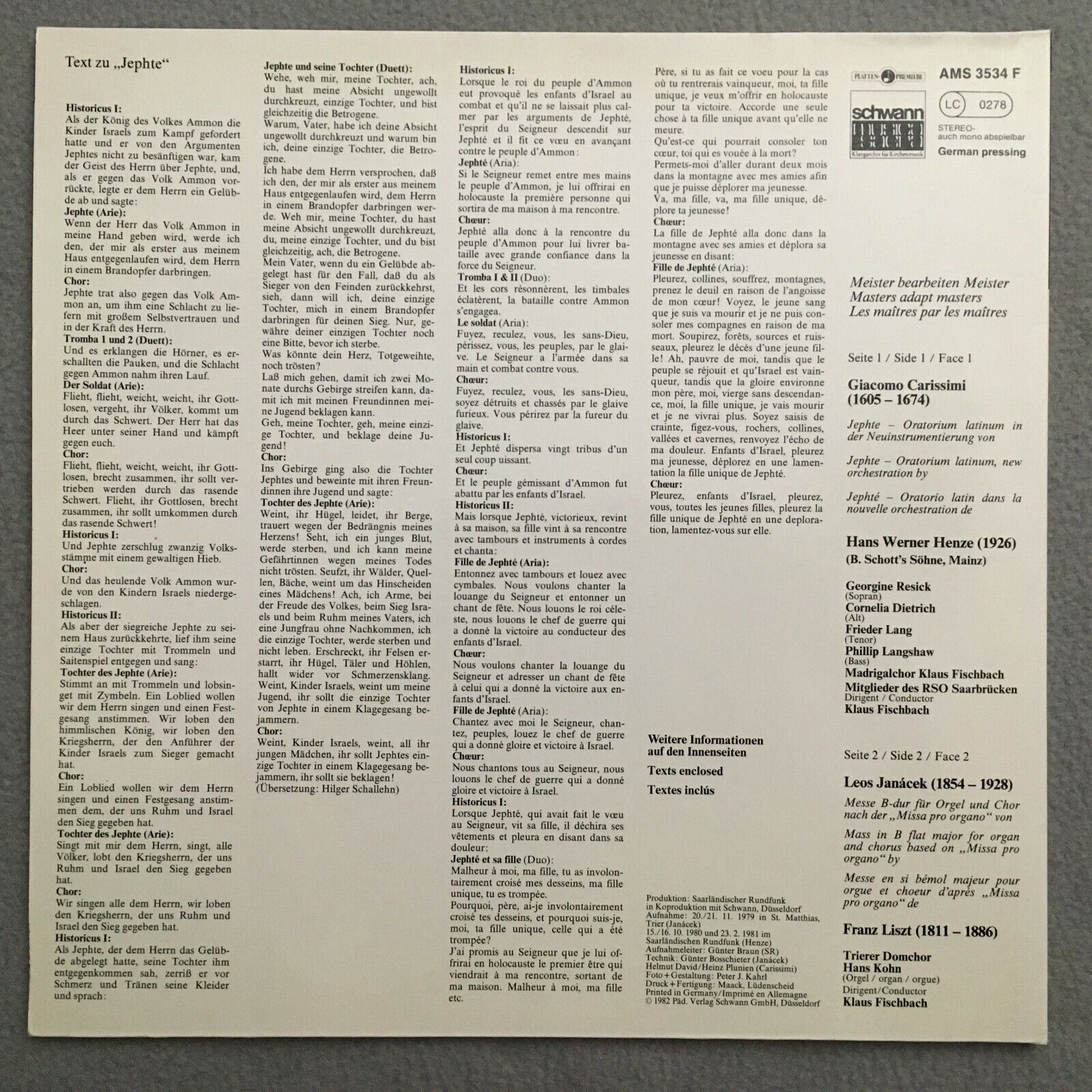 S278 Carissimi Jephte Janacek Mass Liszt Fischbach Schwann AMS 3534 Stereo