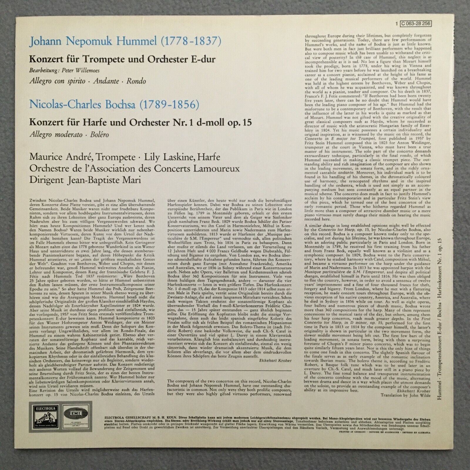S271 Hummel Bochsa Concertos Andre Laskine Mari EMI 1 C 063-28 256 Stereo