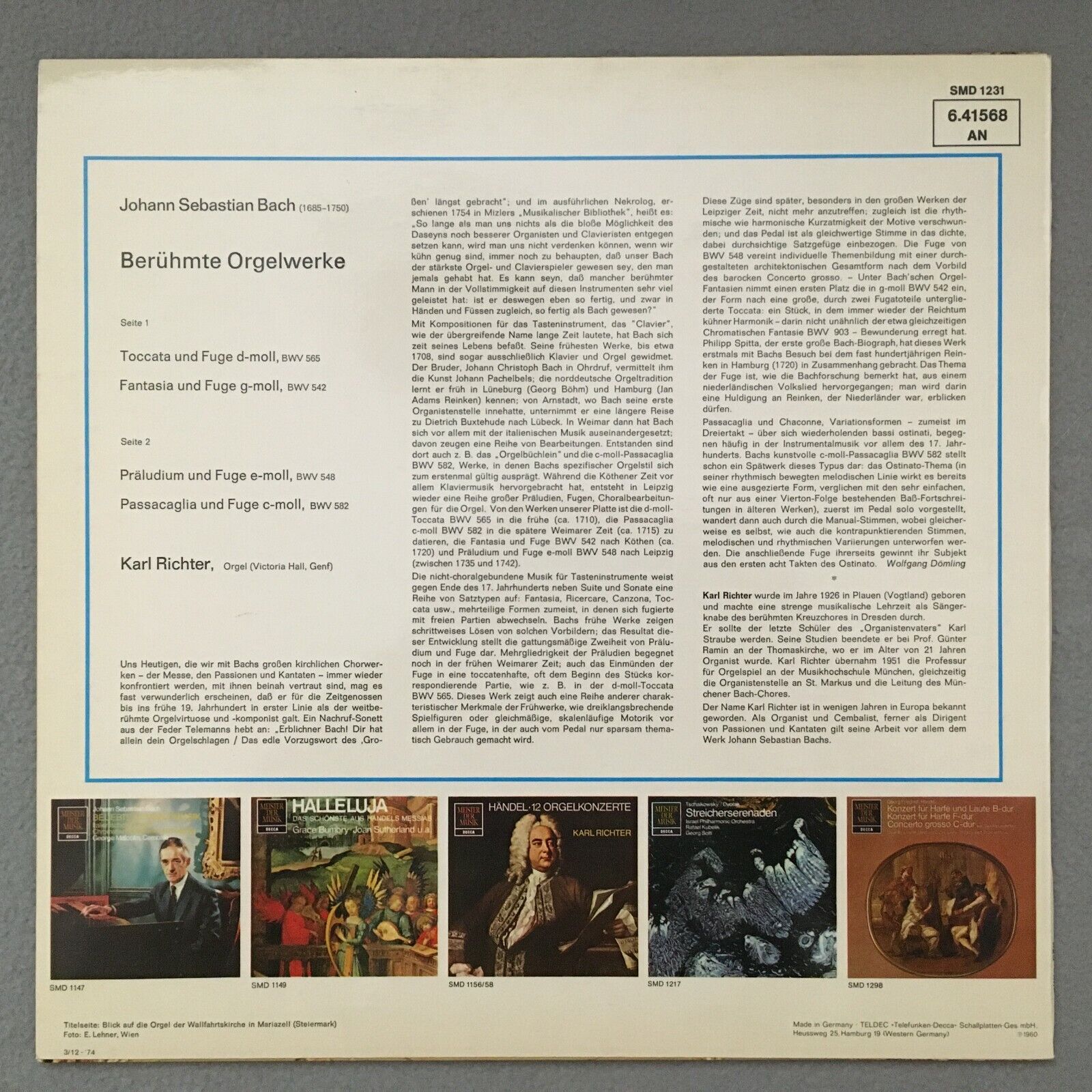 S243 Bach Famous Organ Works Toccata Fantasy Richter DECCA 6.41568 AN Stereo