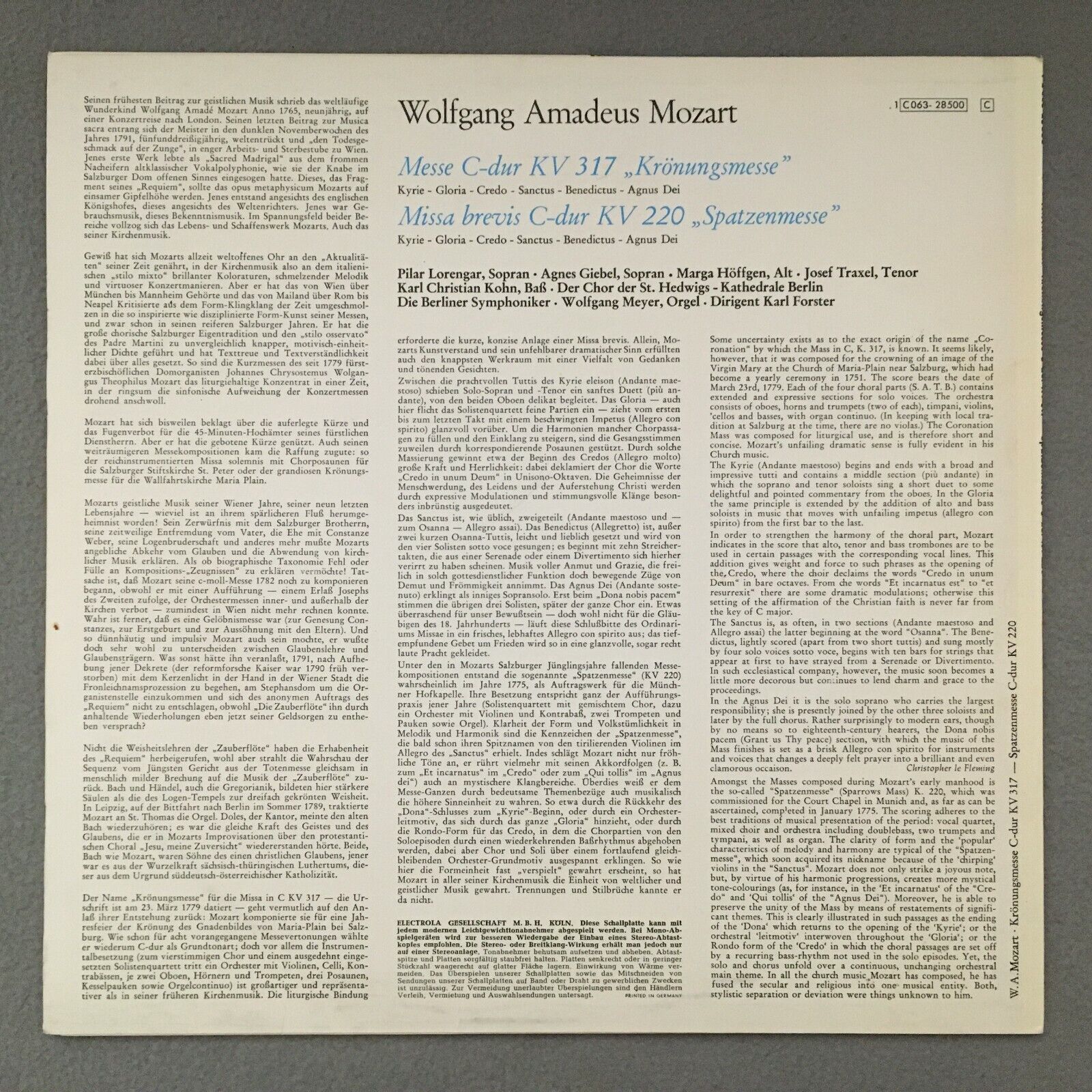S239 Mozart Coronation Mass Höffgen Meyer Forster EMI 1 C 063-28 500 Stereo