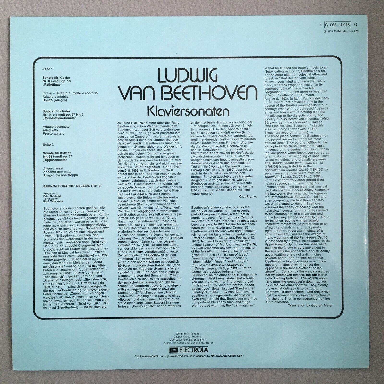 S238 Beethoven Piano Sonatas Gelber EMI 1 C 063-14 018 Quadro