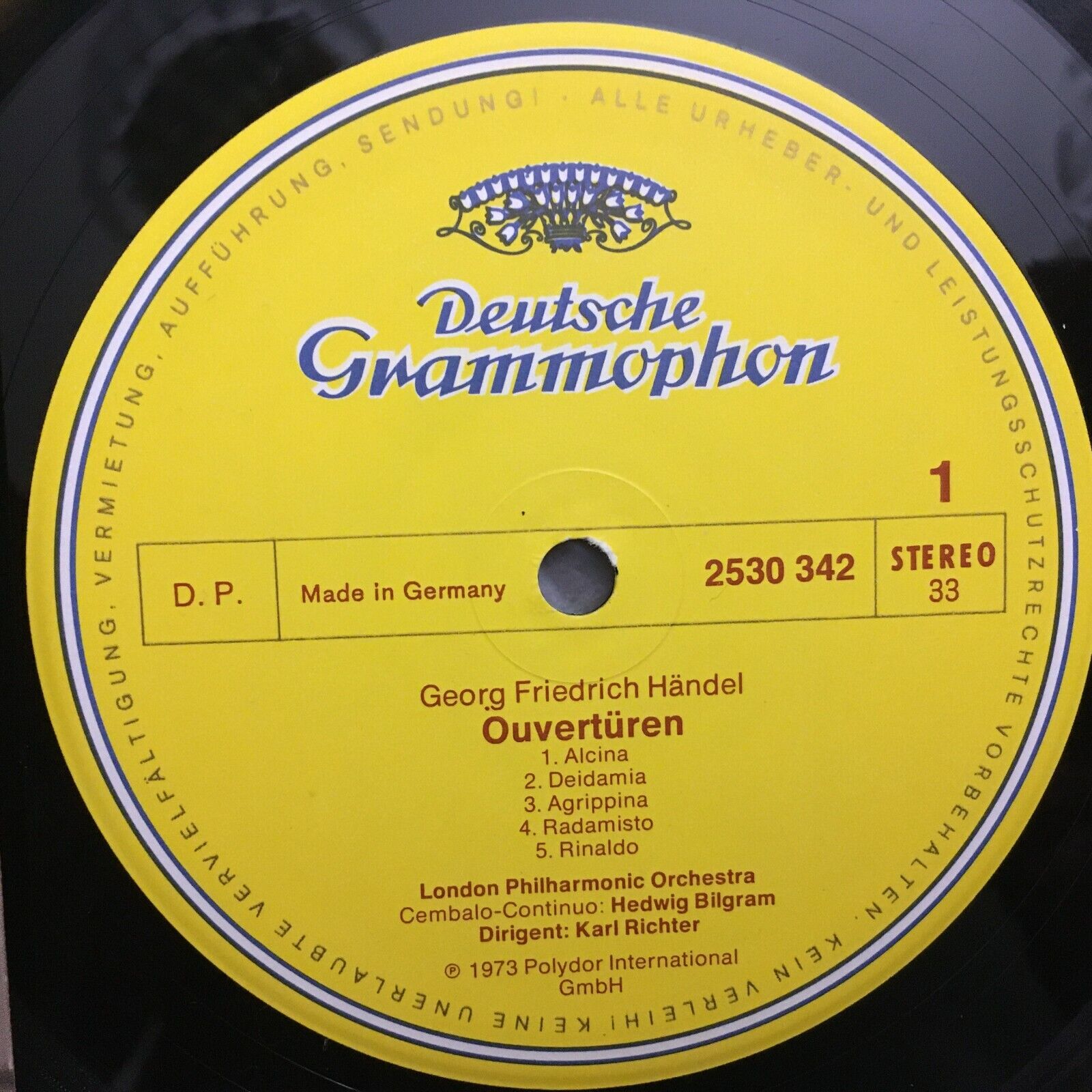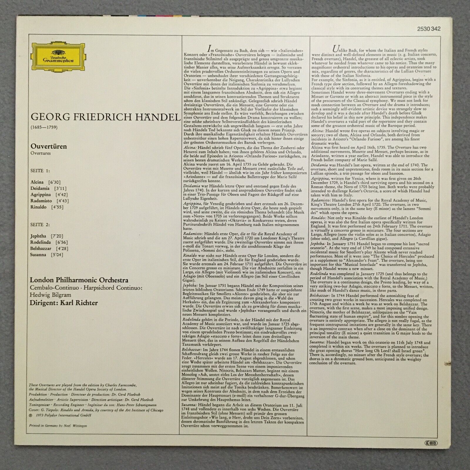S118 Handel Overtures Bilgram Richter LPO DGG 2530 342 Stereo